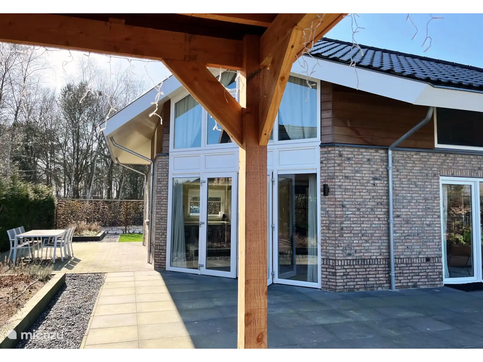 - Jardin à l’arrière avec terrasse couverte avec mobilier de jardin.