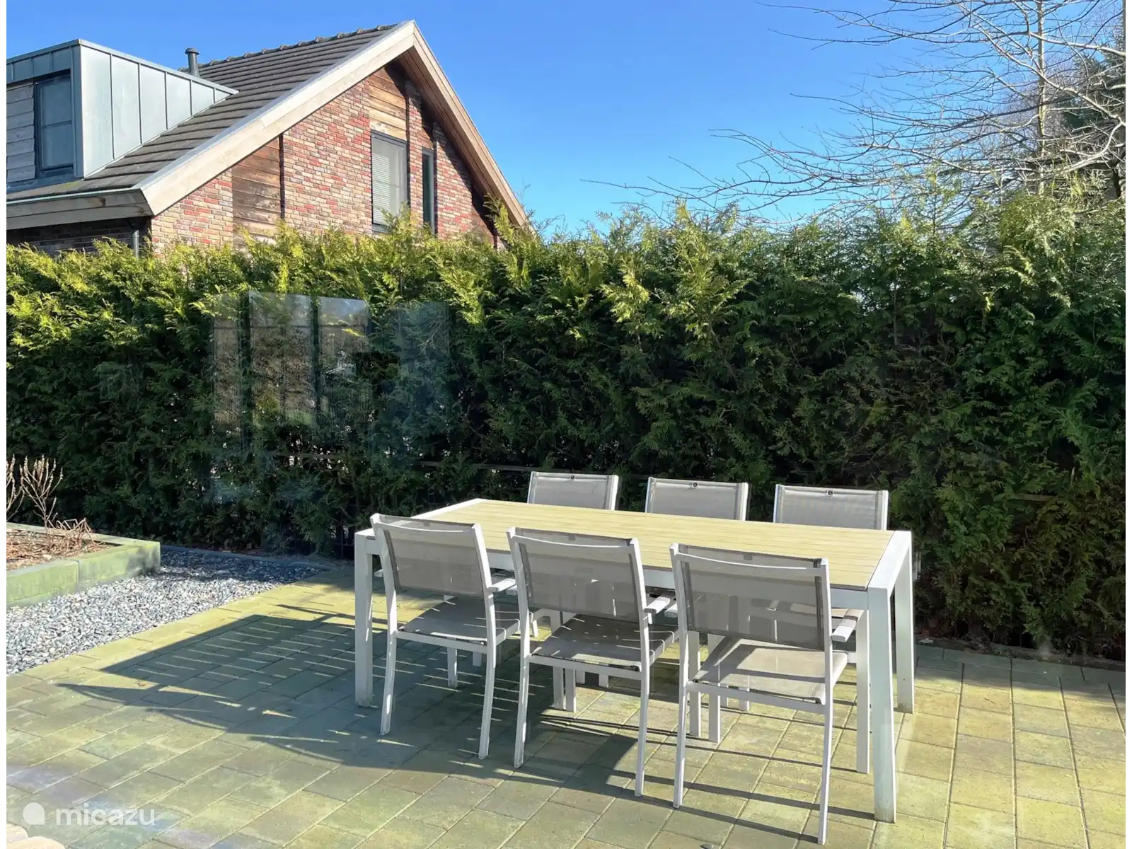 - Terrasse avec table à manger.