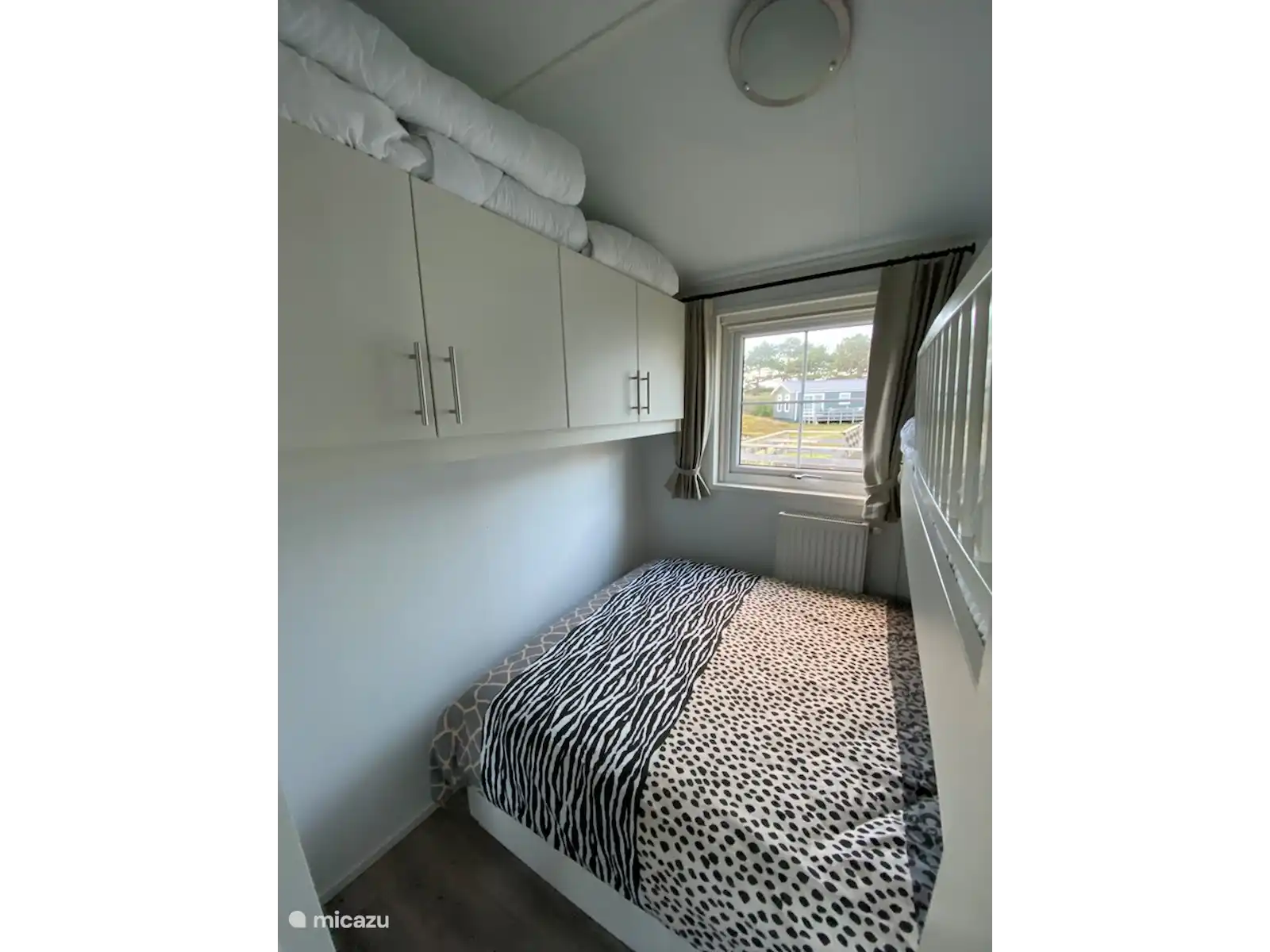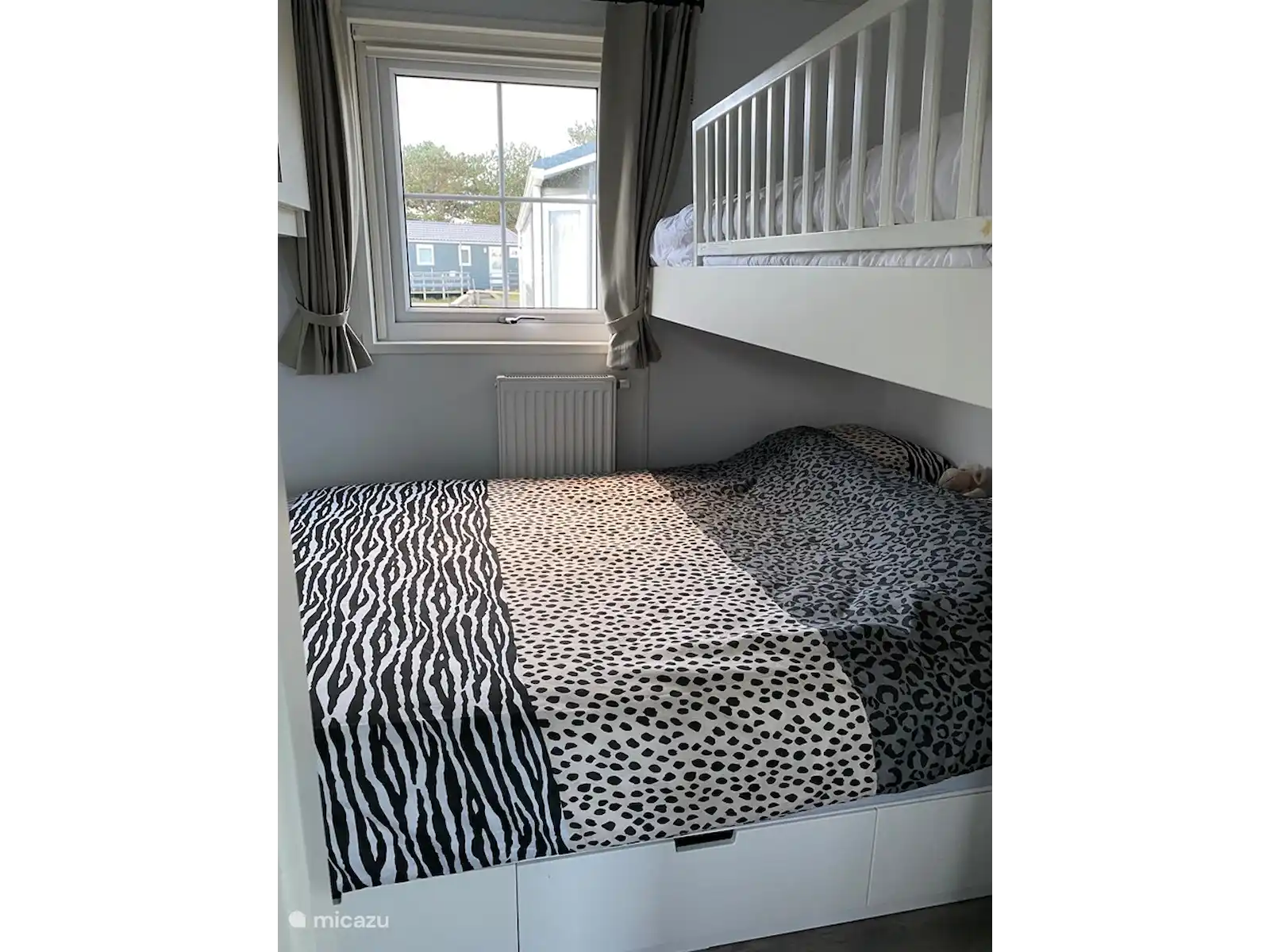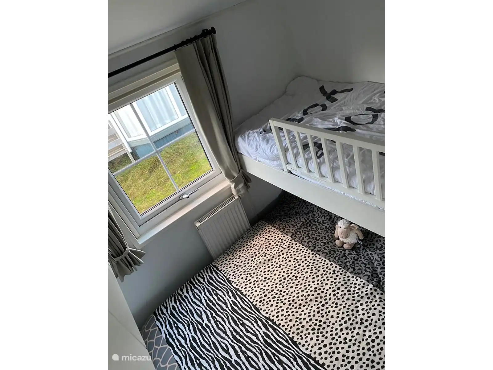 La deuxième chambre comprend un lit double (140x200) et un lit mezzanine (80x200).