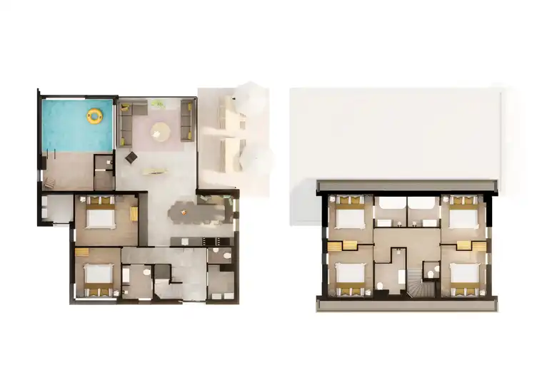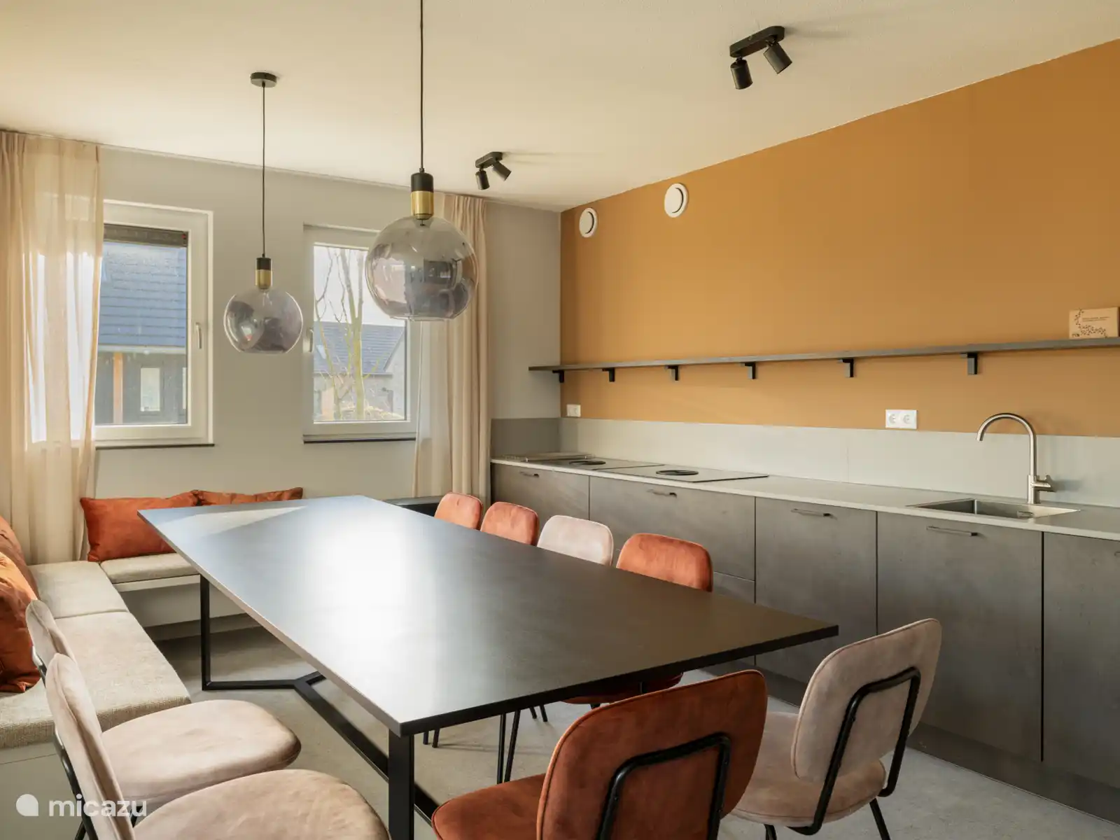 Le salon spacieux dispose d’un coin salon avec une télévision connectée où vous pourrez diffuser votre contenu préféré. De plus, il y a un coin repas avec table à manger. La luxueuse cuisine ouverte est entièrement équipée avec une plaque de cuisson Bora, un four mixte, un lave-vaisselle et une machine Nespresso. De plus, au rez-de-chaussée, il y a 2 chambres avec 2 lits simples chacune, une chambre dispose d’une télévision intelligente avec capacité de streaming. De plus, au rez-de-chaussée, il y a une salle de bain avec douche, lavabo et toilettes et des toilettes séparées.