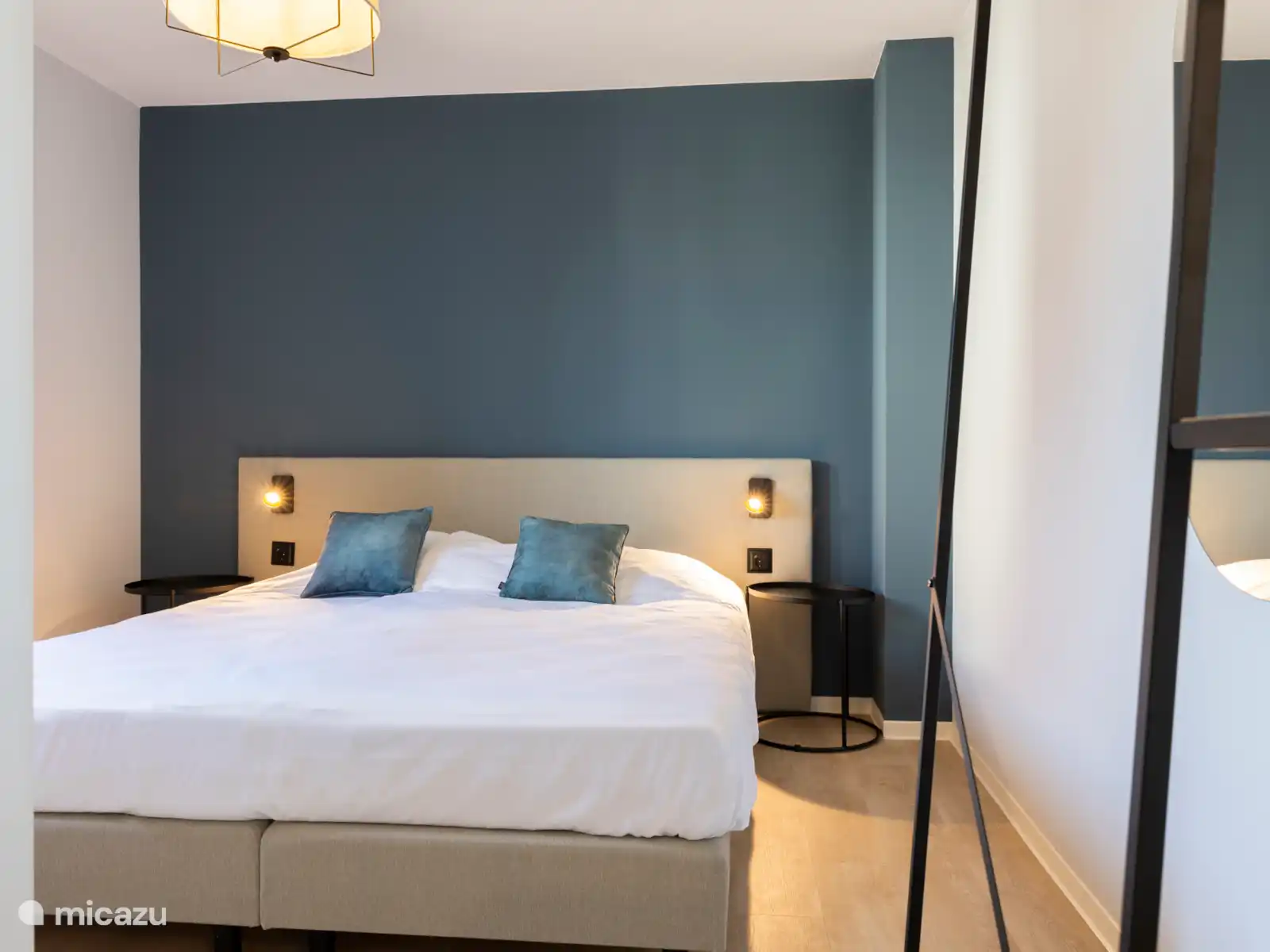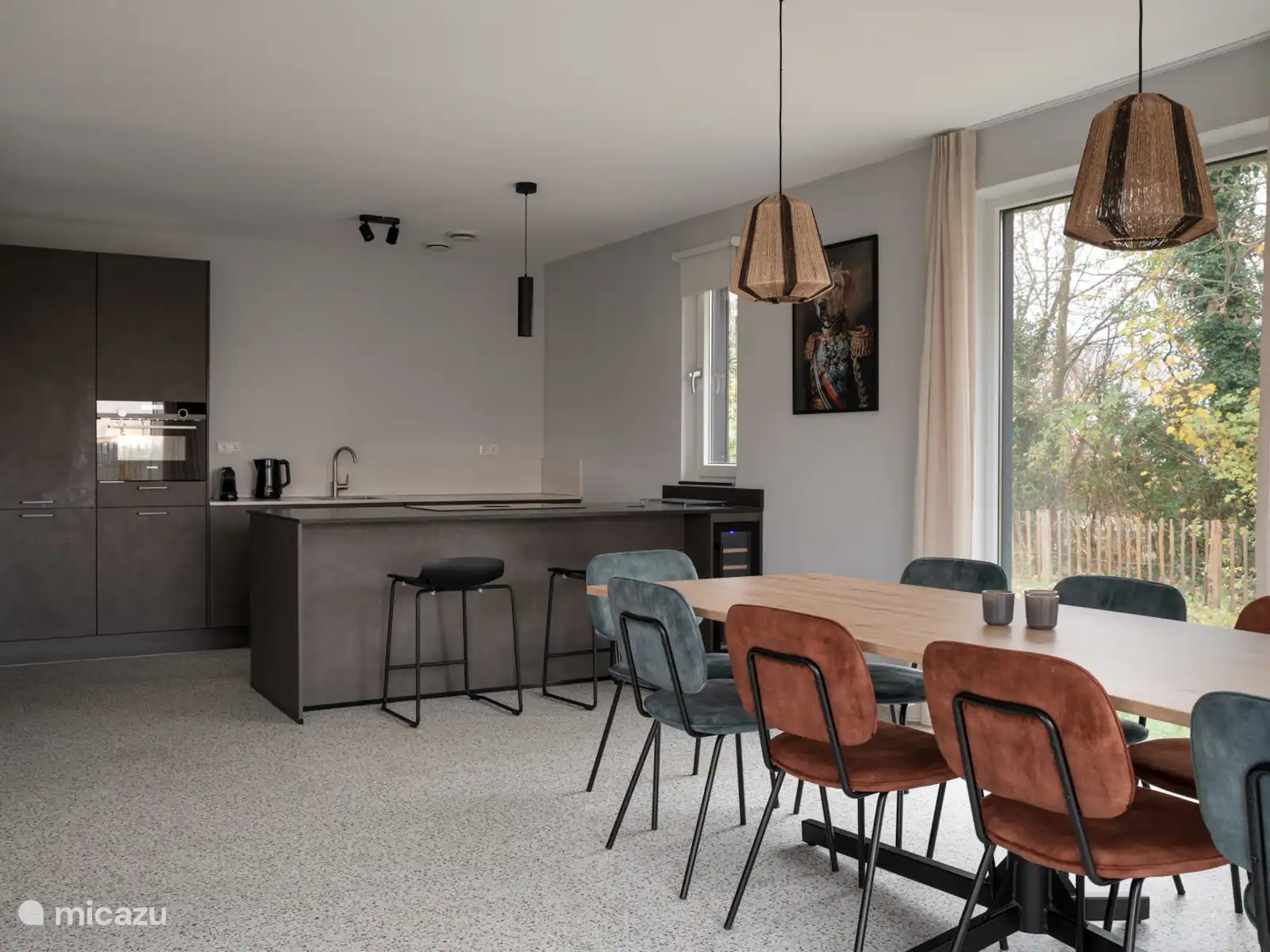 Le salon spacieux dispose d’un coin salon attrayant avec un banc (55 x 90 centimètres) et une télévision intelligente qui offre la possibilité de diffuser. De plus, il y a un coin repas avec table à manger. La luxueuse cuisine ouverte est entièrement équipée avec un îlot de cuisson et des appareils de luxe, notamment une plaque de cuisson Bora, un four combiné, un lave-vaisselle, une machine Nespresso et un réfrigérateur à vin. Au rez-de-chaussée, il y a une chambre avec une télévision intelligente avec capacité de streaming et une salle de bains attenante avec baignoire, douche et lavabo. Il y a aussi des toilettes séparées.