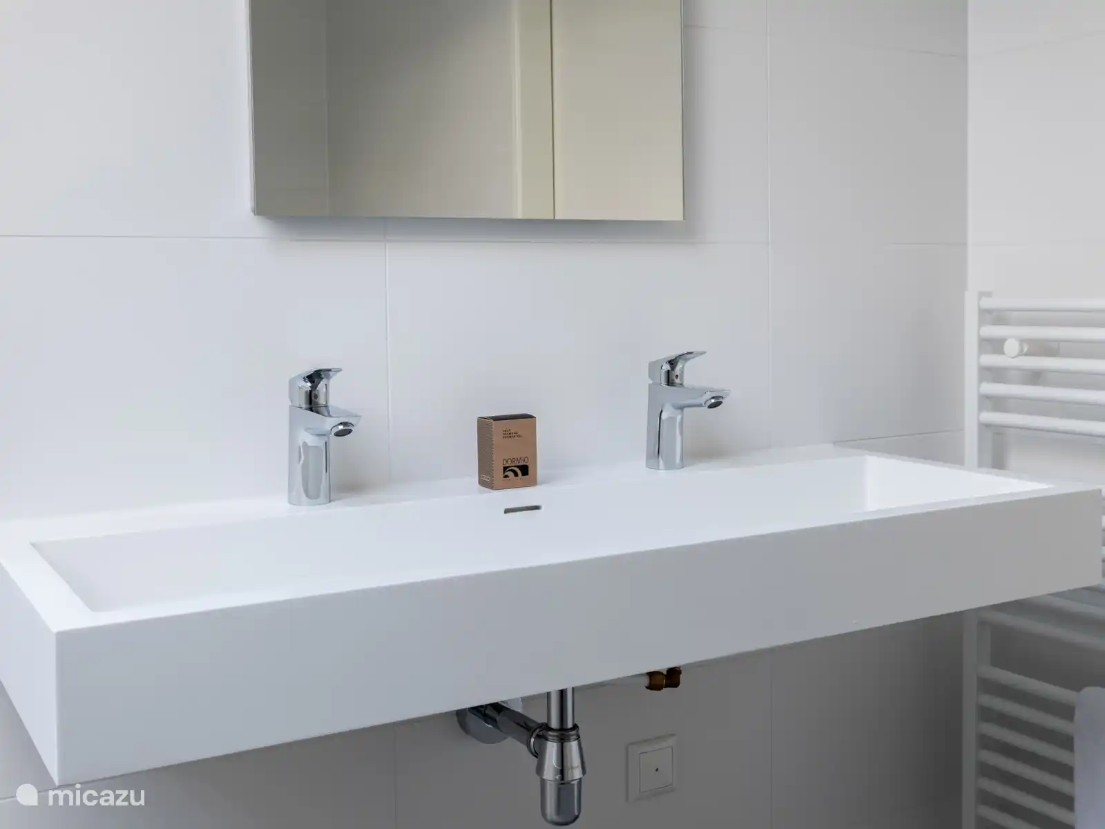 Le salon spacieux dispose d’un coin salon avec une télévision connectée avec option de streaming et d’un coin repas confortable. La cuisine ouverte est équipée d’appareils de luxe, vous ne manquerez donc de rien. Vous disposez d’une plaque de cuisson Bora, d’un four mixte, d’un lave-vaisselle, d’une machine Nespresso et d’un réfrigérateur à vin.