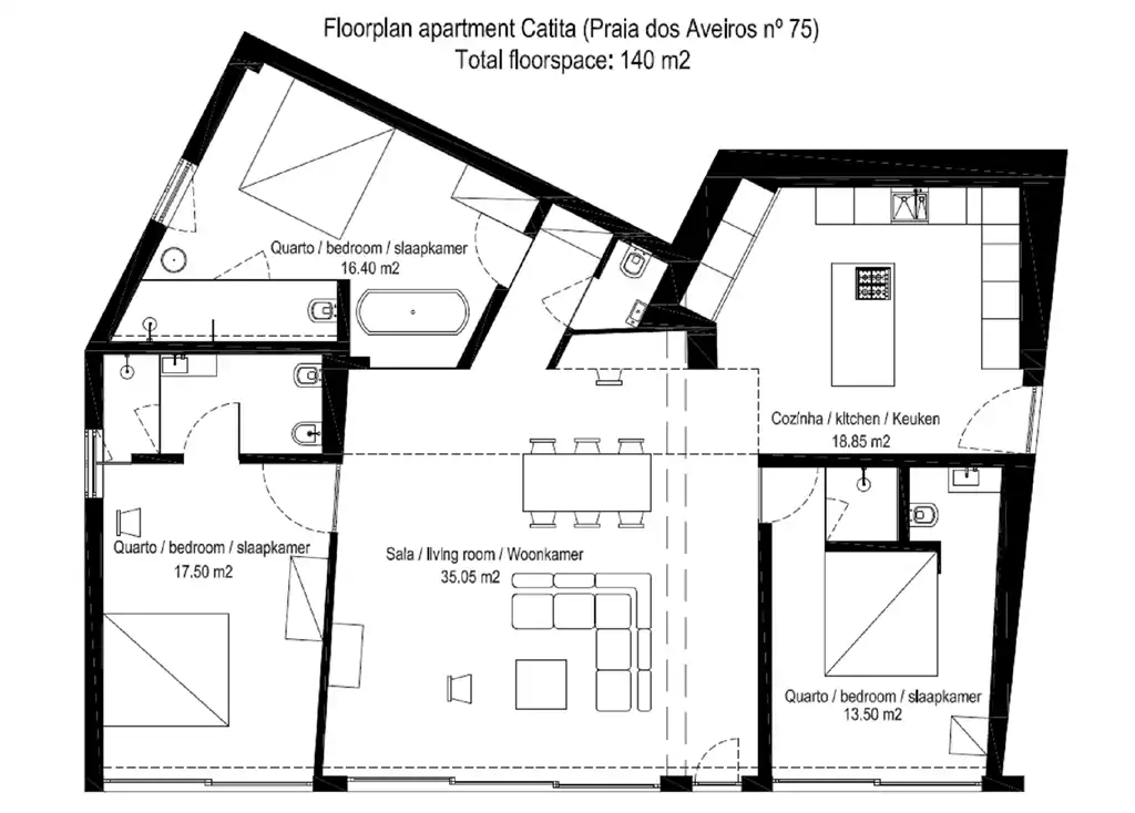 Cet appartement, appelé Catita, achevé en 2017, bénéficie d'un emplacement unique : il se trouve à moins de 75 mètres de la plage Praia dos Aveiros.