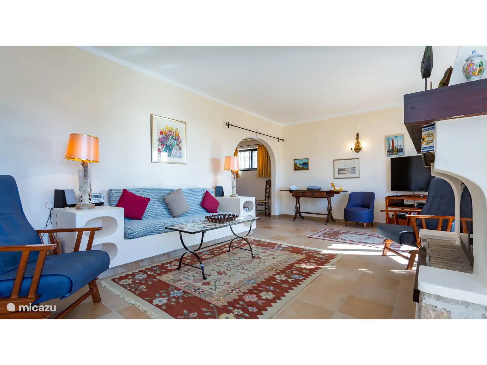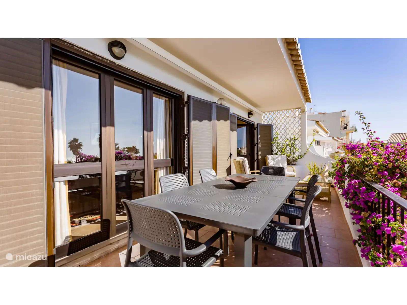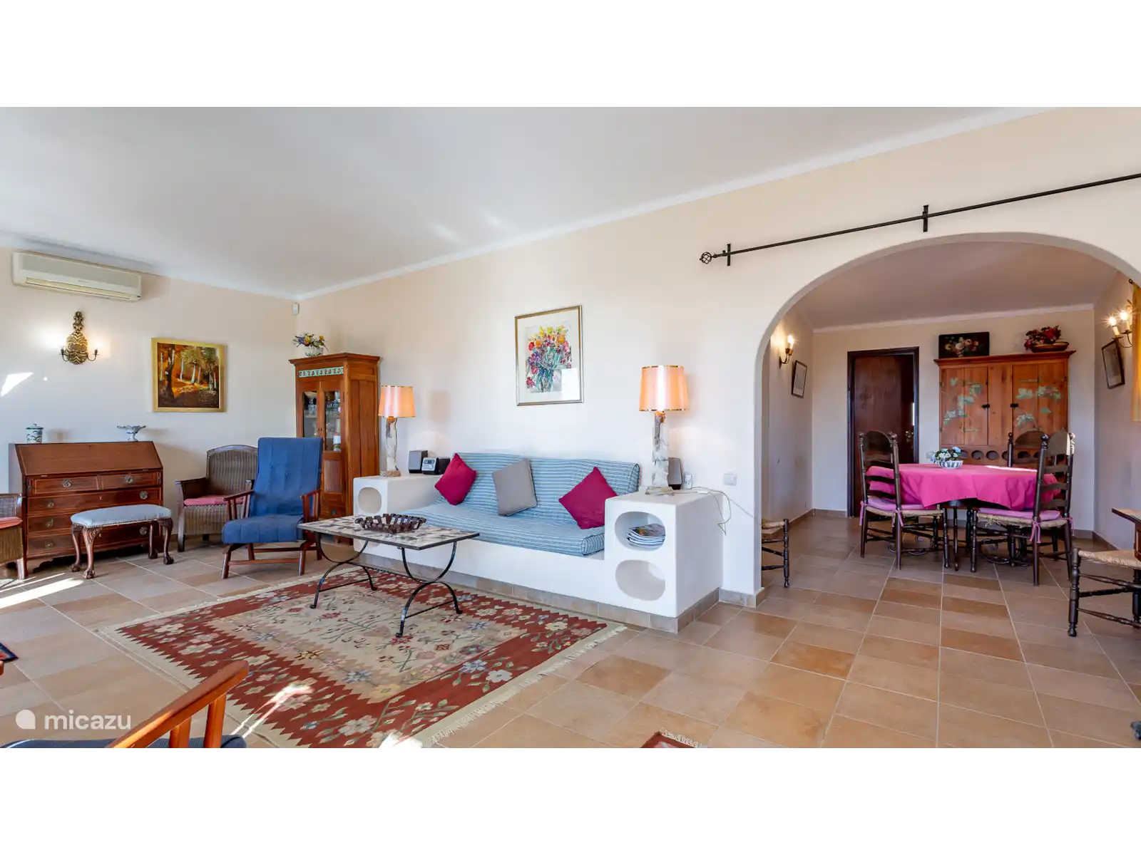 3 chambres avec deux lits simples (1 avec salle de bain attenante). 1 salle de bain. Premier étage : salon avec arcade menant à la salle à manger. Cuisine. Depuis que les photos ont été prises, un nouveau bâtiment a été achevé à l’arrière de d’Agua. Ce bâtiment a légèrement changé la vue mais il y a toujours une vue partielle sur la mer.