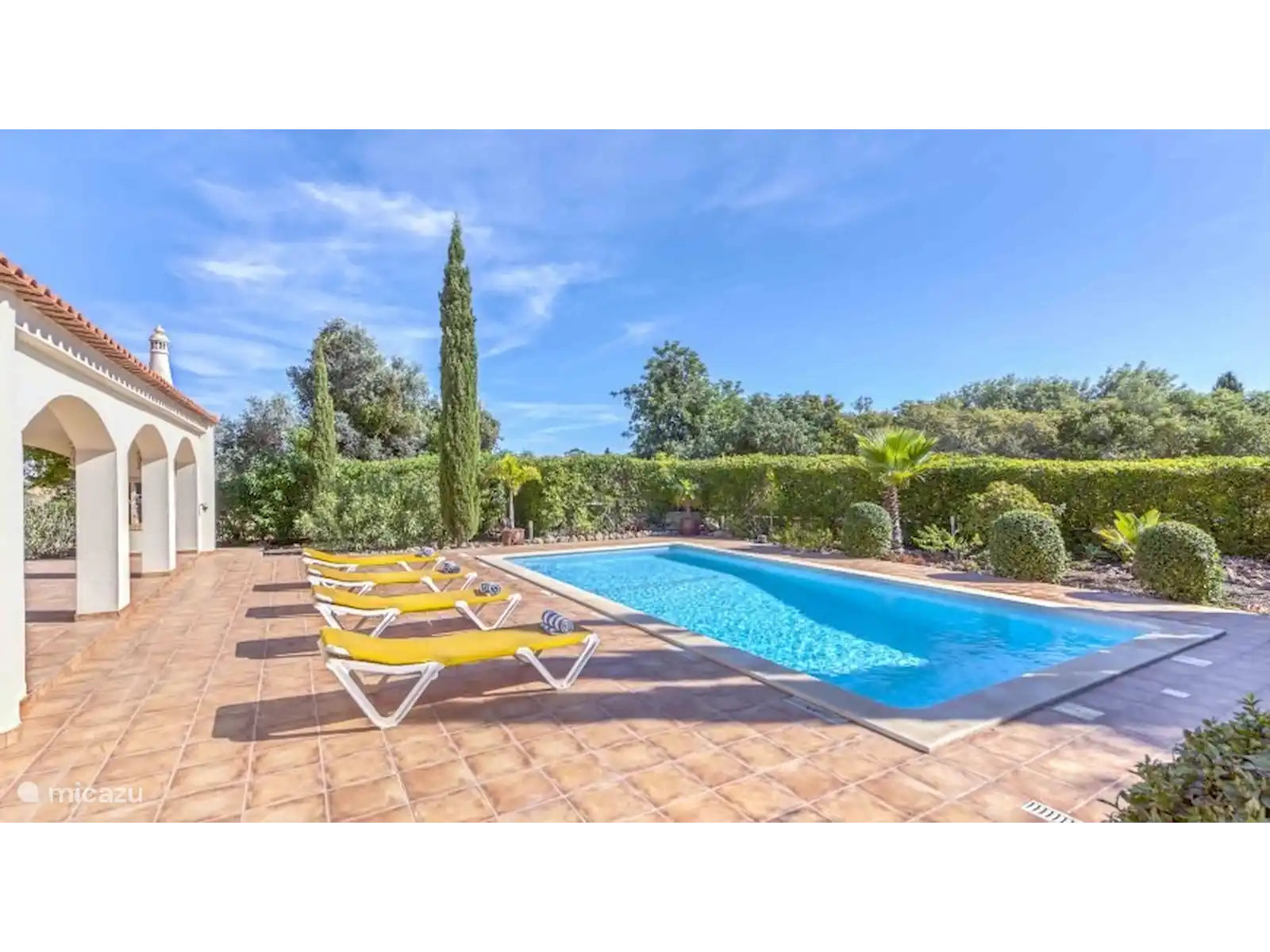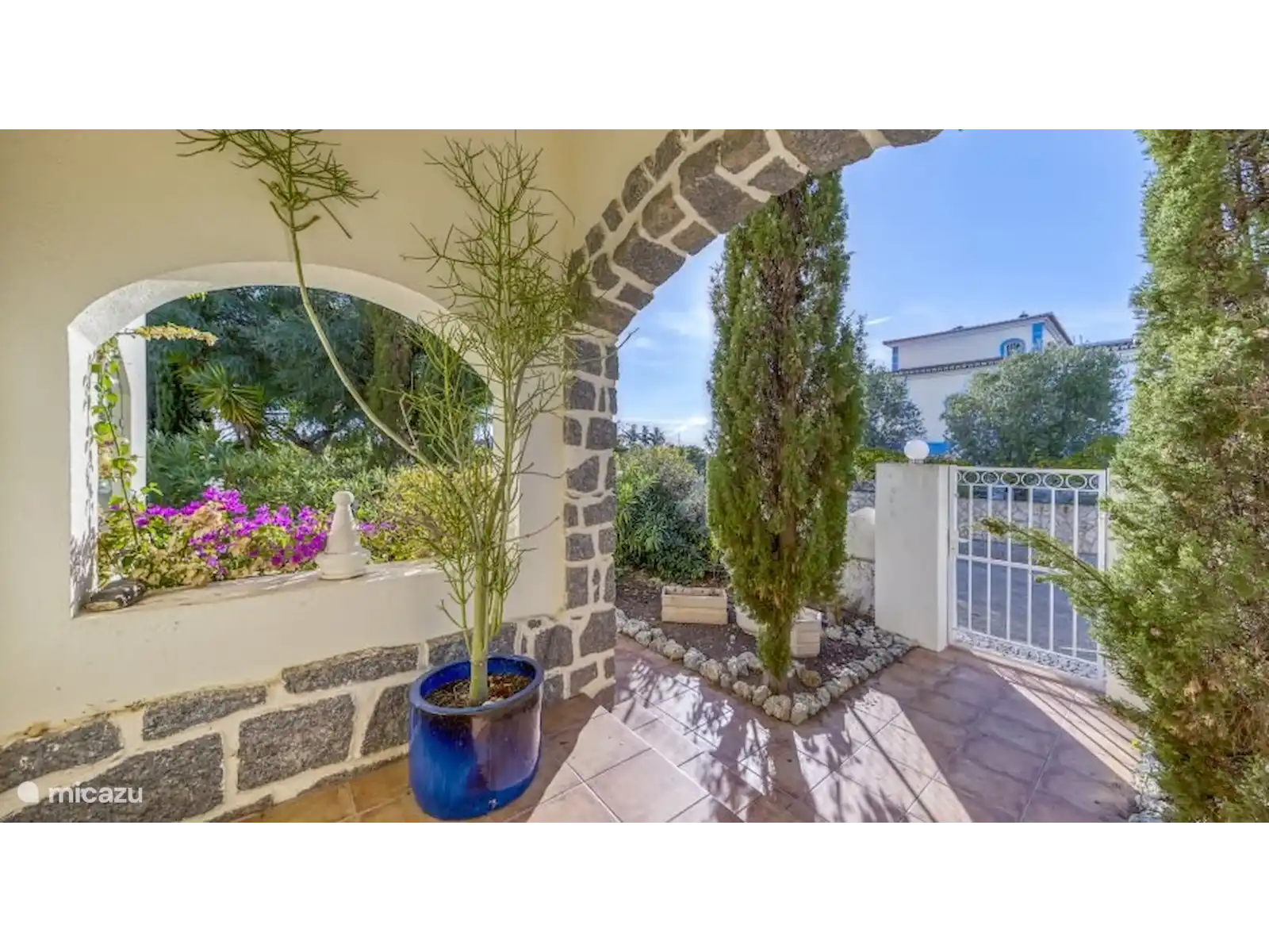 Extérieur : Joli jardin avec des plantes et des arbustes méditerranéens. Piscine privée chauffée (à partir d’avril 2026) de 9 x 4,5 mètres, équipée de marches romaines. Le jardin est entièrement clôturé.