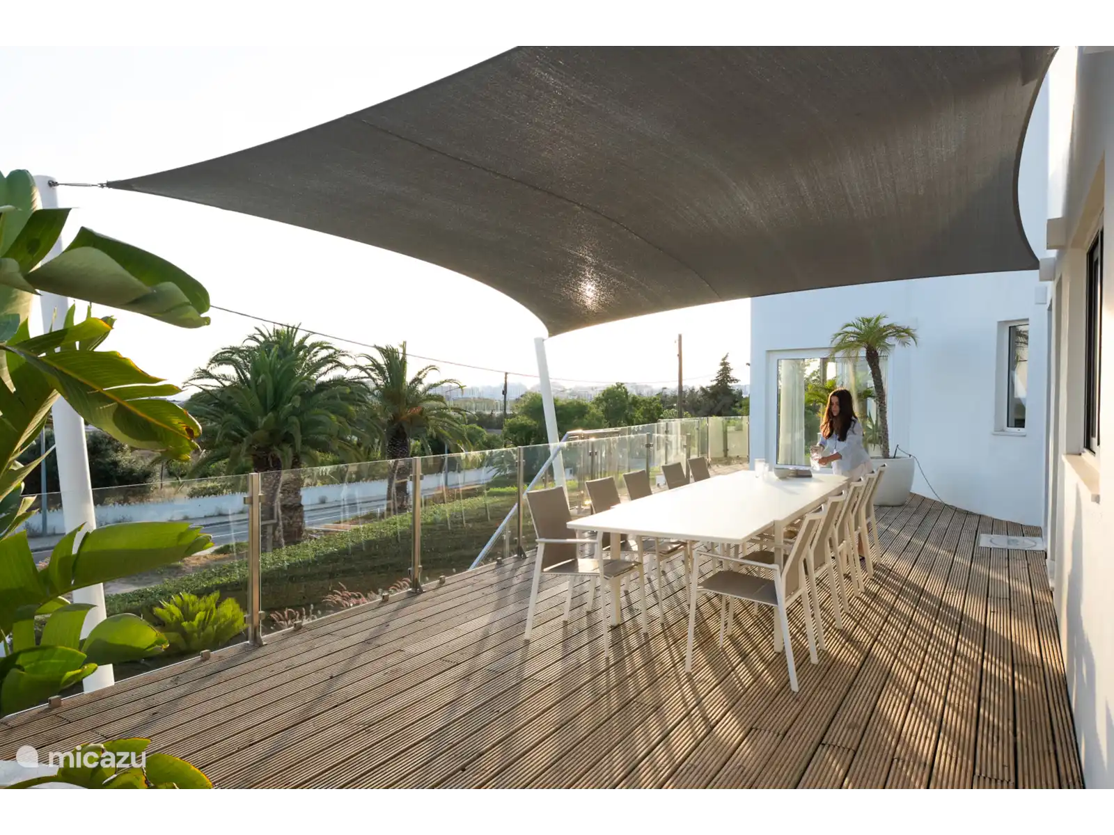 Par exemple, du côté et de l’avant de la cuisine se trouve une grande terrasse avec une table à manger spacieuse.