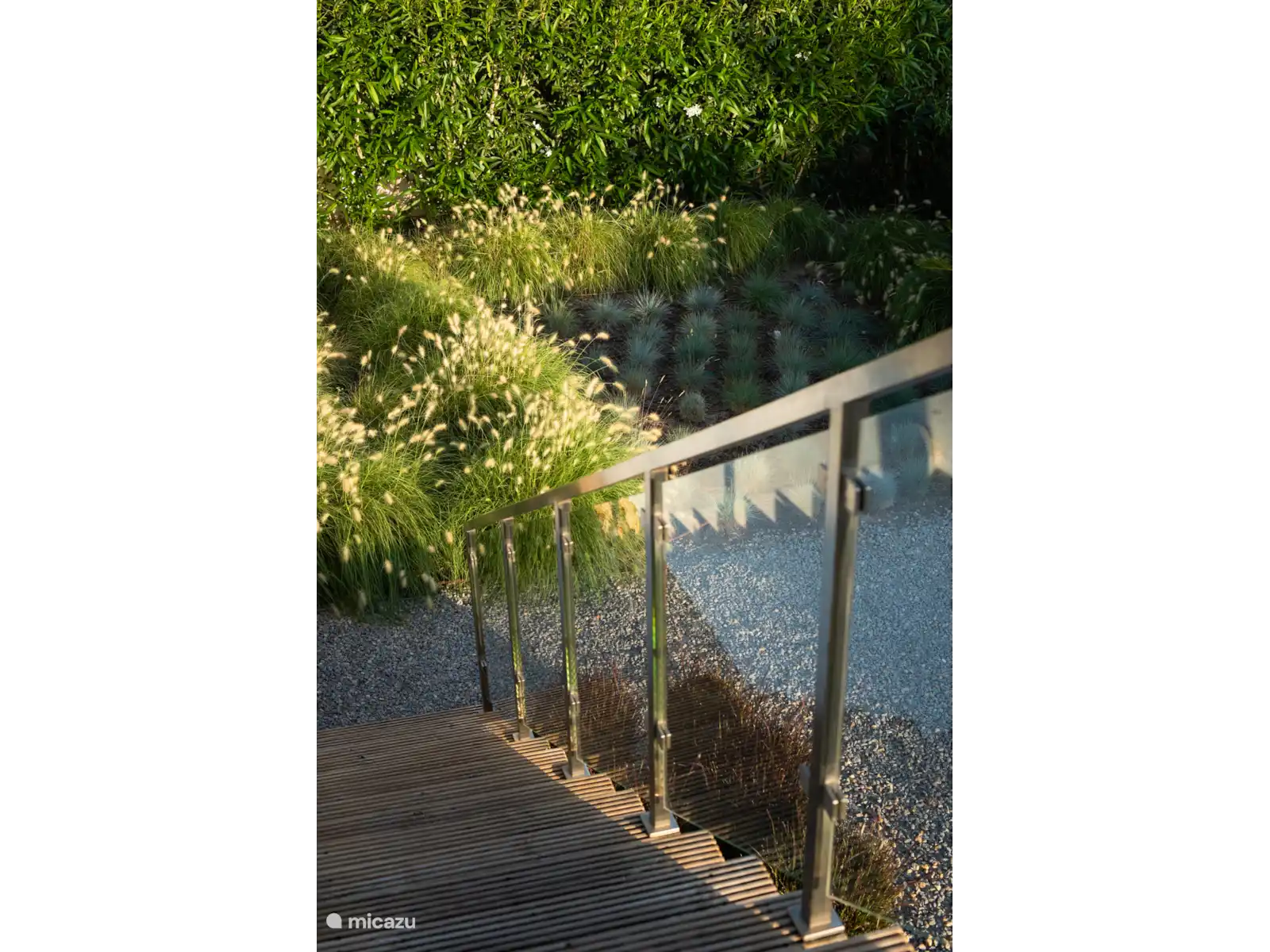 Pour entrer dans la maison, il faut d’abord monter un escalier spacieux, c’est aussi le cas de la piscine. Une fois dans la maison, il n’y a pas de différences de niveau significatives.