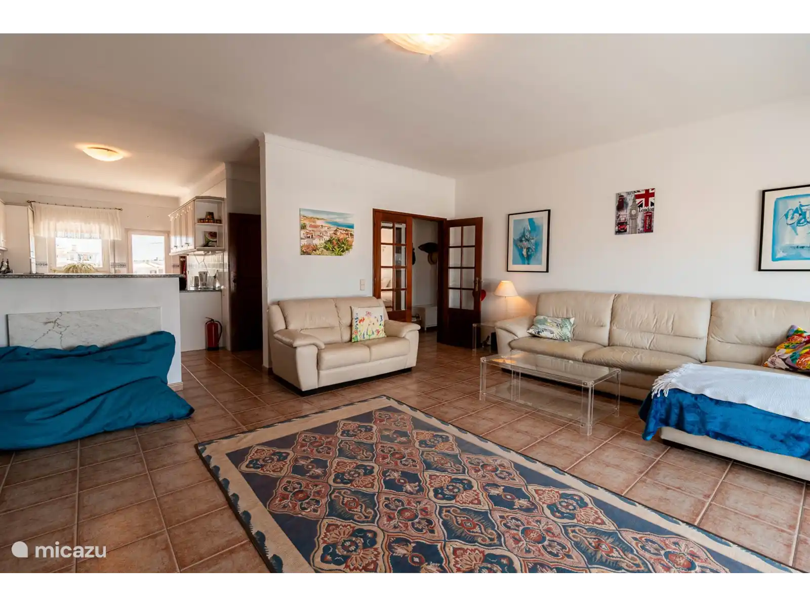 Cet appartement comprend une chambre principale avec un lit double et une douche attenante, une deuxième chambre avec deux lits simples, une autre salle de bain avec baignoire et un grand séjour avec une cuisine attenante. Les deux chambres ont leur propre terrasse et le salon a accès à la plus grande terrasse où vous avez cette vue imprenable sur la mer et la ville de Lagos.