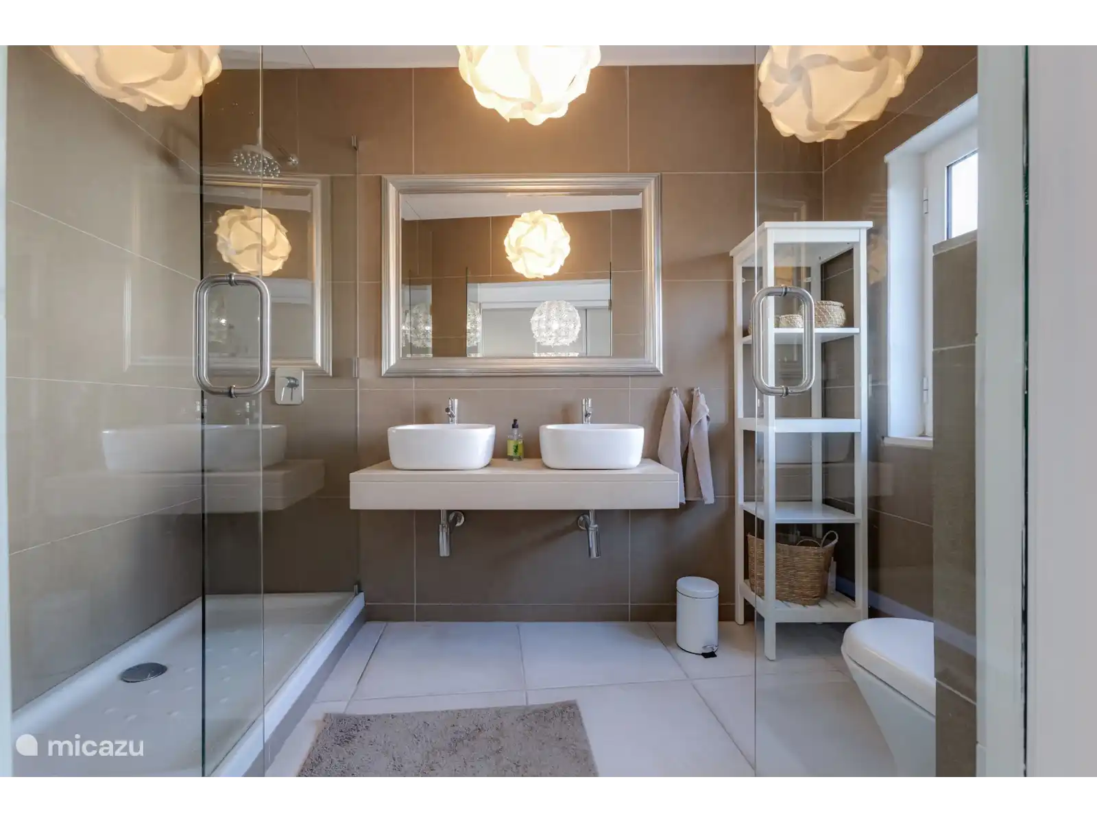 Ce joli trois chambres est sur trois étages. Au rez-de-chaussée il y a une chambre, une salle de bain, un salon confortable avec une cuisine pour le petit-déjeuner et une petite terrasse à l'arrière. Au premier étage, il y a deux chambres et deux salles de bains dont une en suite. La cuisine principale et la salle à manger se trouvent au dernier étage où se trouve également la terrasse principale qui offre une vue magnifique.
