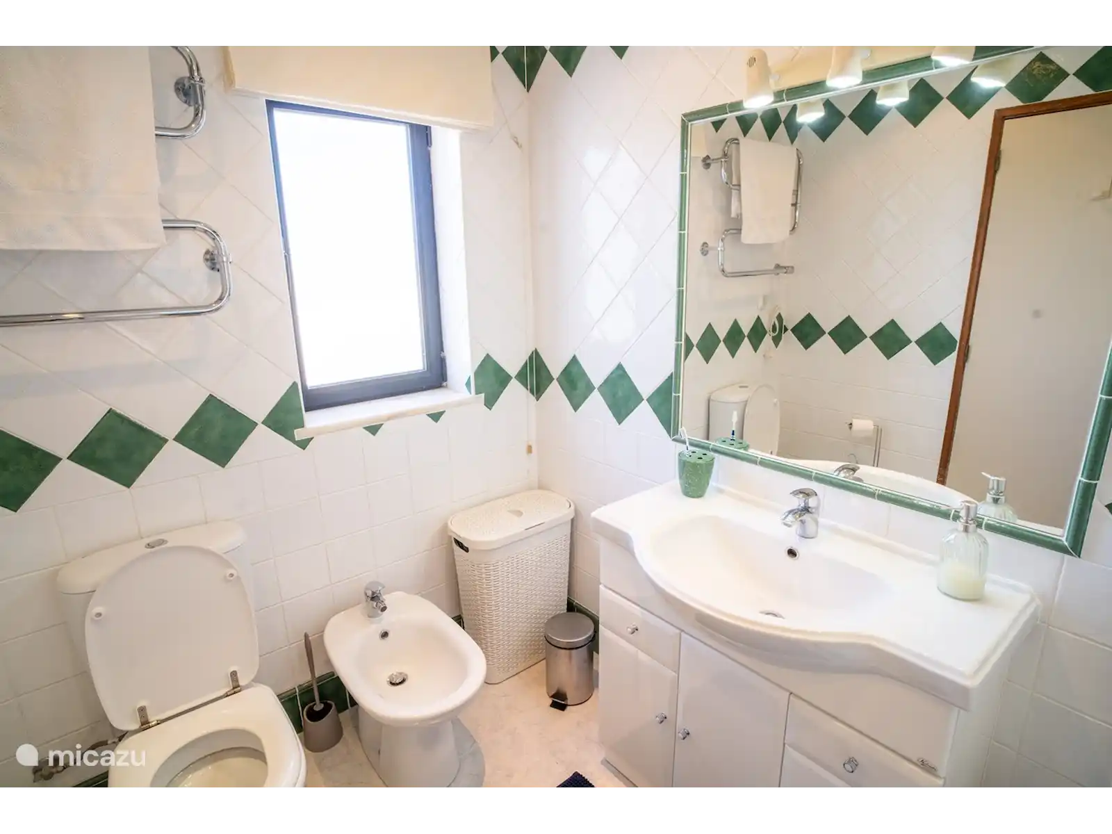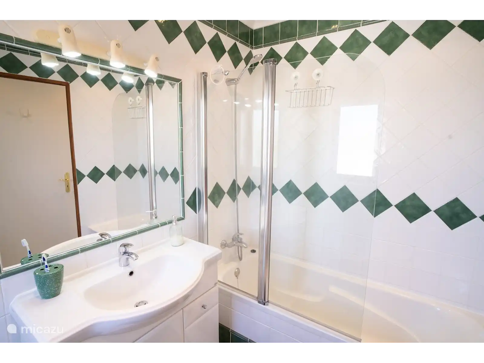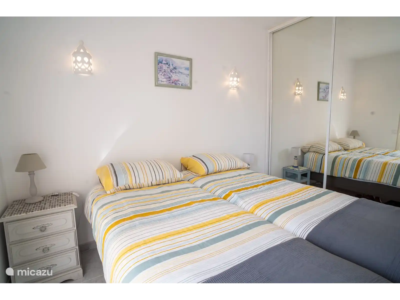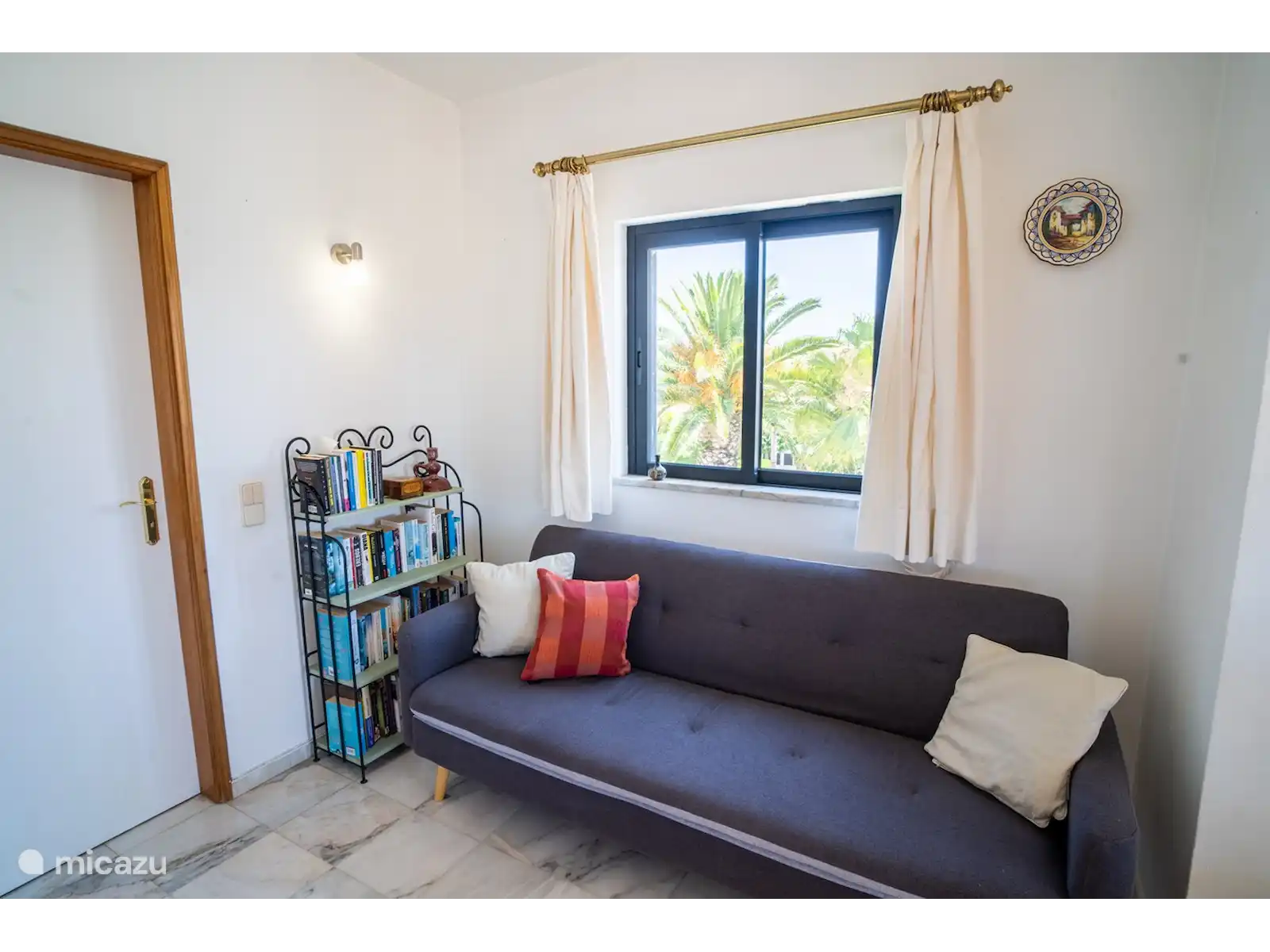 La villa se compose de deux étages, avec 3 chambres au rez-de-chaussée. De chaque chambre, vous pouvez marcher directement dans le jardin. Il y a de bons stores pare-soleil, vous pouvez donc dormir au frais et dans l’obscurité et il y a des ventilateurs disponibles. L’une des chambres dispose d’une salle de bain attenante avec baignoire et toilettes. Il y a aussi une salle de bain séparée avec douche et toilettes. Les deux autres chambres ont chacune deux sommiers tapissiers pour 1 personne.