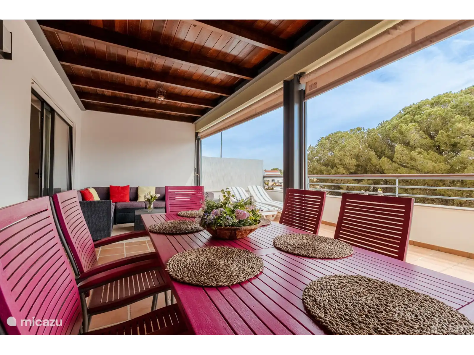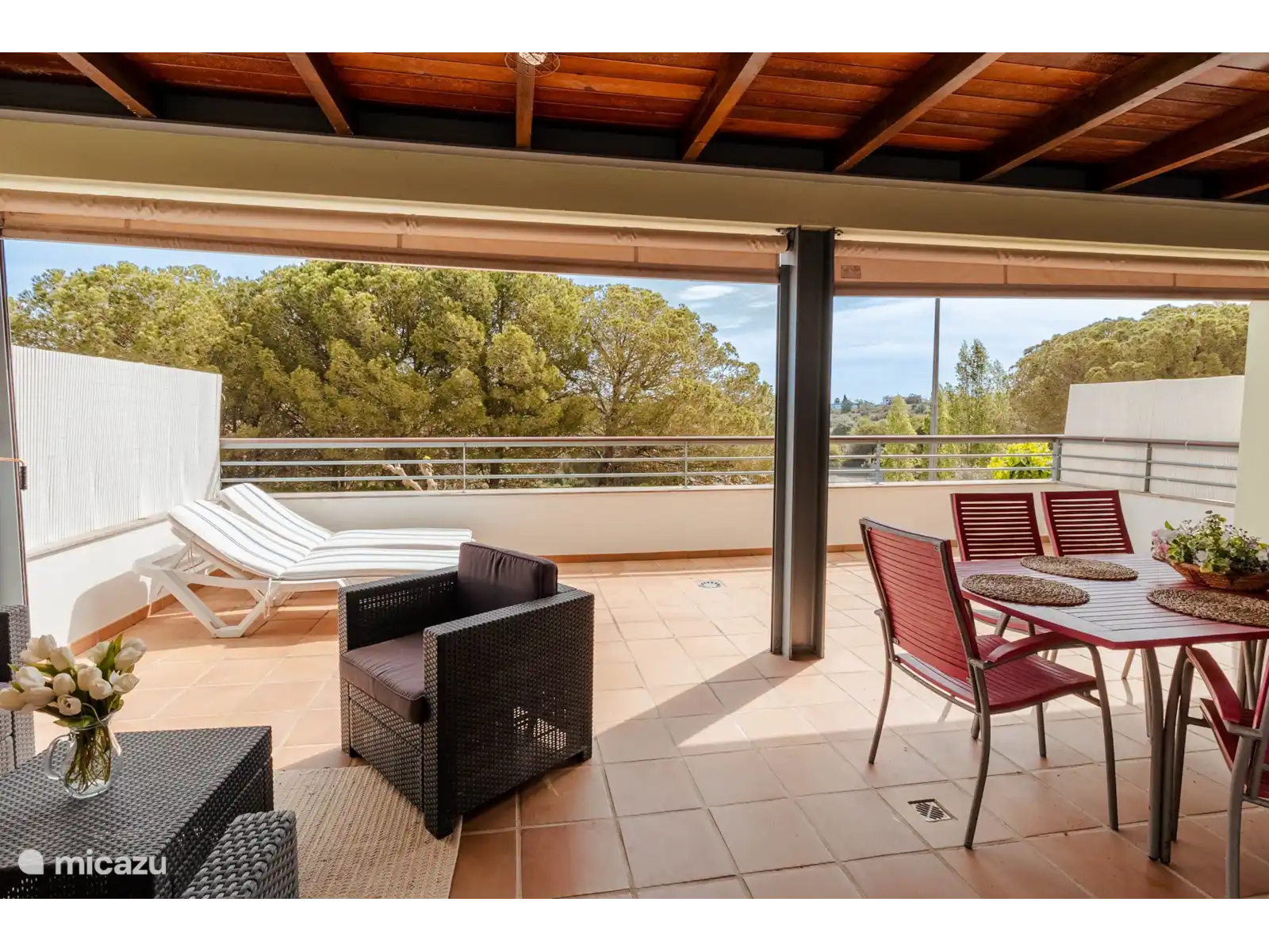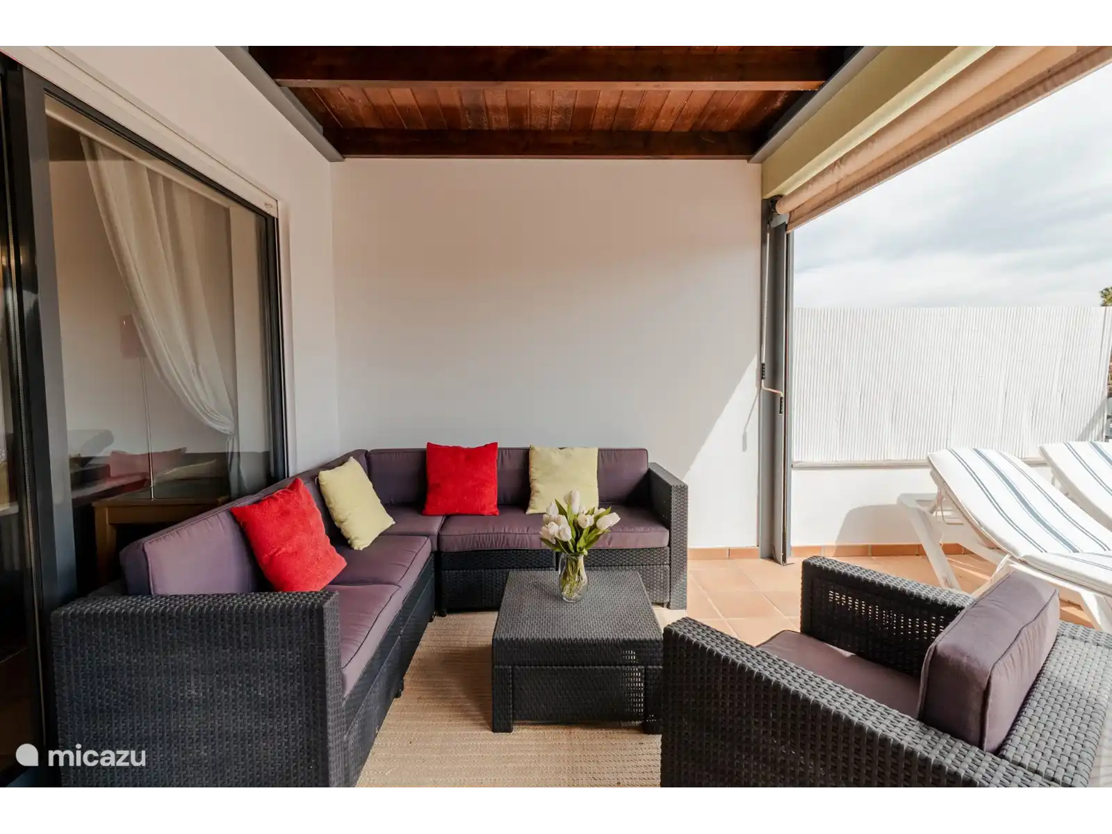 Cet appartement de deux chambres est très lumineux et dispose d'une immense terrasse avec une vue magnifique et paisible sur les jardins et le paysage de la copropriété. La chambre principale dispose d'une salle de douche attenante et d'un accès direct à la terrasse. La deuxième chambre dispose de deux lits simples et est soutenue par une autre salle de bain avec baignoire. La cuisine est entièrement équipée avec tout ce dont vous avez besoin, notamment un lave-linge et un lave-vaisselle.