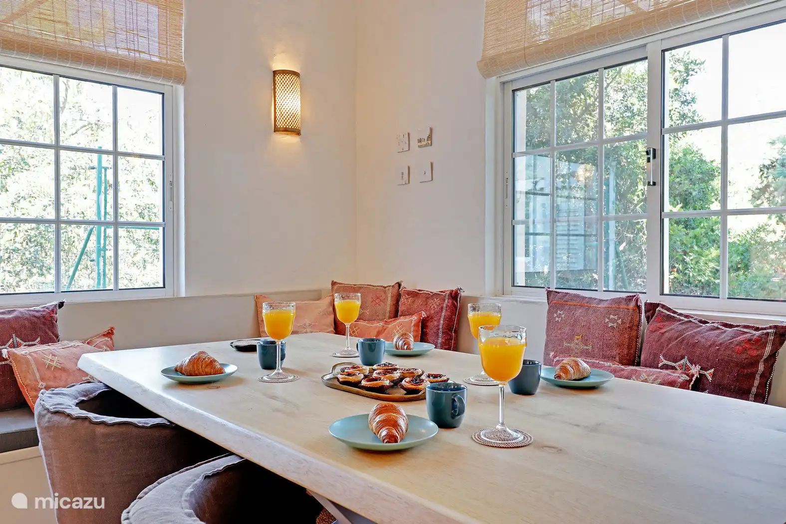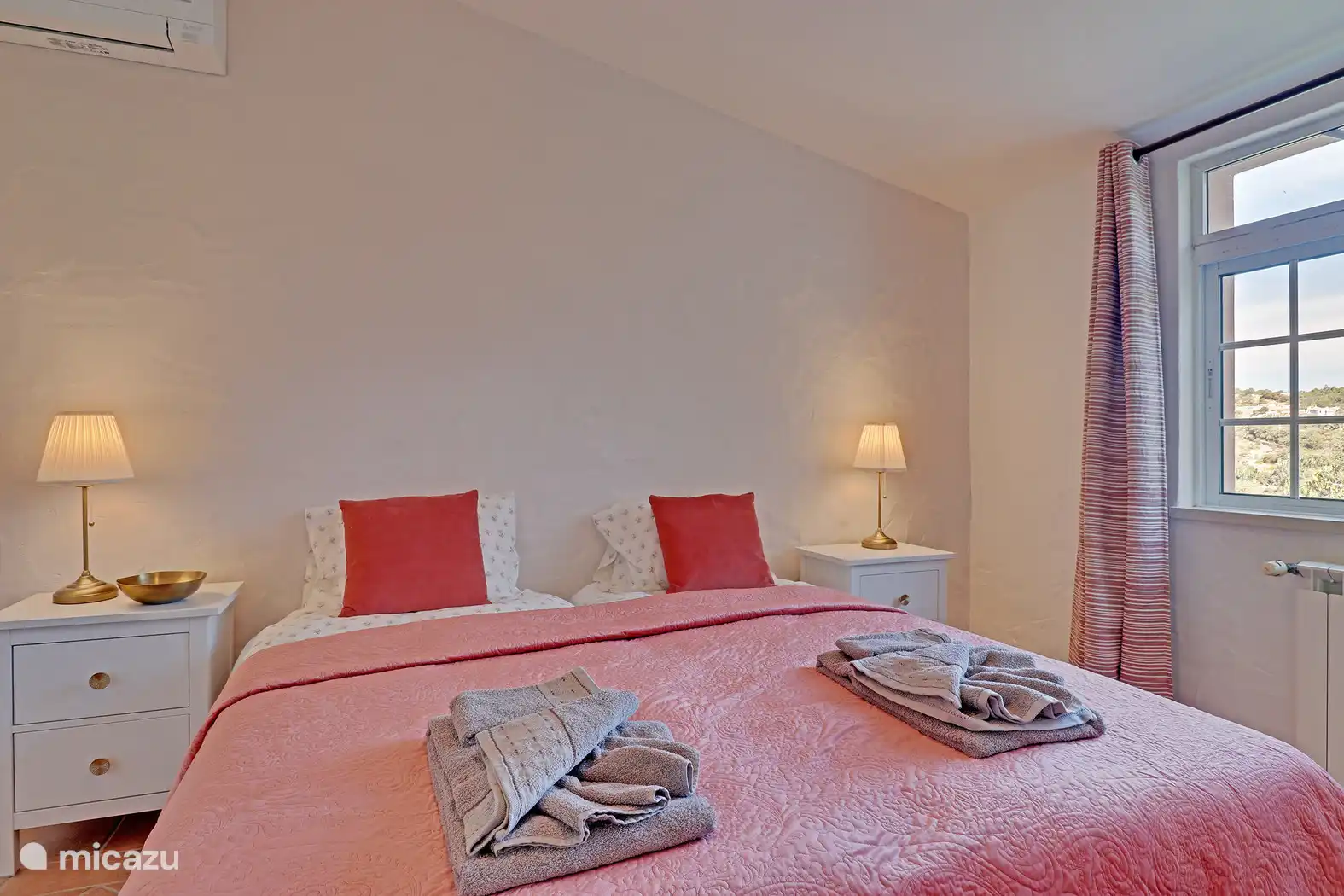 Quinta da Galina possède un salon douillet au rez-de-chaussée avec une cheminée, parfait pour les soirées d’hiver. La cuisine dispose d’une grande table à manger faite maison où tout le monde peut se rassembler. À l’étage se trouvent quatre chambres climatisées avec des lits à sommier confortables, dont deux disposent de salles de bain attenantes. La villa est lumineuse et accueillante, conçue à la fois pour le confort et le style.