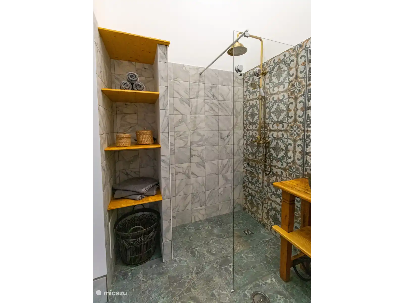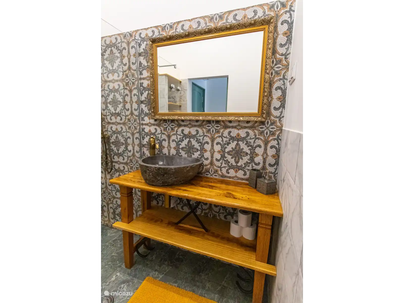 Par la terrasse, vous entrez dans le salon/cuisine ouverte de l’appartement. Vous disposez d’une cuisine complète avec une variété d’équipements et d’ustensiles à votre disposition. À travers la cuisine, vous avez une porte qui vous mène dans la chambre (il est possible d’écarter les lits, veuillez le faire savoir si c’est quelque chose que vous voulez avant l’enregistrement). Par cette même porte, vous avez une porte sur votre gauche menant à la salle de bain avec douche à l’italienne.