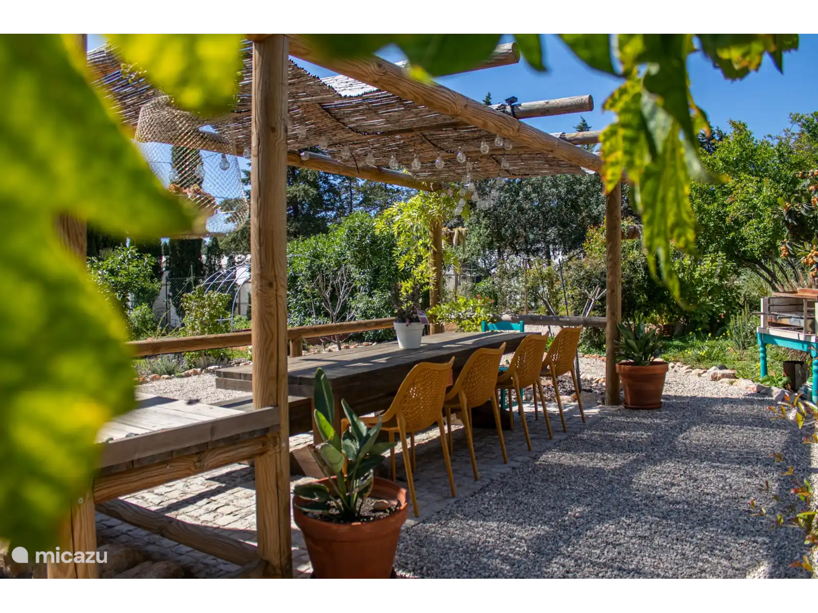 Outre vos terrasses privées, vous pouvez également profiter du jardin commun. Dans tout le jardin, nous avons planté des arbres fruitiers, dont vous pouvez cueillir les fruits pour en profiter (si en saison). Nous avons un potager ouvert avec des herbes et des légumes que vous pouvez cueillir et utiliser. Pour vous rafraîchir, nous disposons d’un bassin profond et d’une douche extérieure. Avec des coins salon autour de vous, vous pouvez également profiter du soleil.