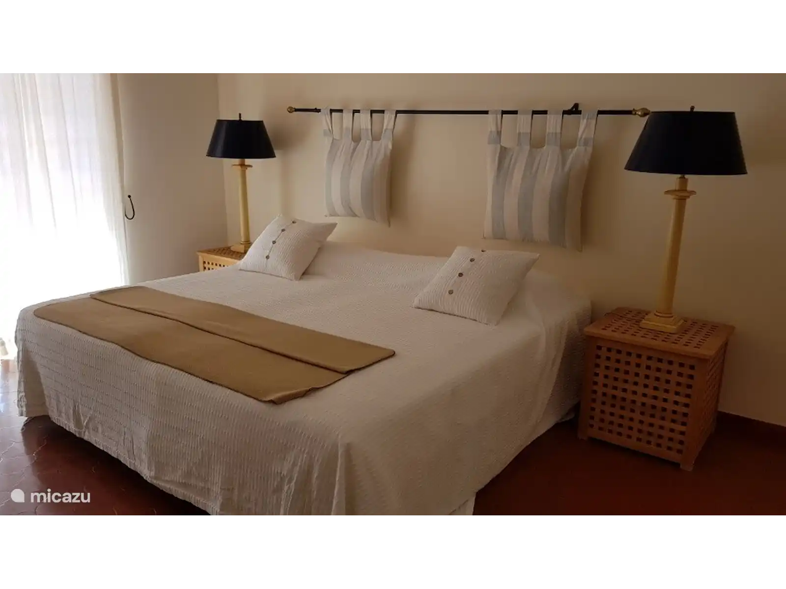 La villa dispose d'une chambre principale très spacieuse avec cheminée et salle de bain avec baignoire et douche séparée. Par les portes françaises, vous êtes directement sur la terrasse avec piscine. La deuxième chambre dispose également d'une salle de bain privée avec baignoire, douche séparée et accès direct à la terrasse et à la piscine. Les toilettes invités sont également situées dans le hall central. La troisième chambre a une salle de bain avec douche. La villa est également équipée de chauffage central (en option), d'un cellier avec lave-linge, sèche-linge et matériel de repassage, de deux télévisions par satellite, d'un vidéo, d'un lecteur DVD, d'une radio et d'un lecteur CD. Des lits bébé sont fournis sur demande. Toutes les zones sont de plain-pied et sans obstacle.