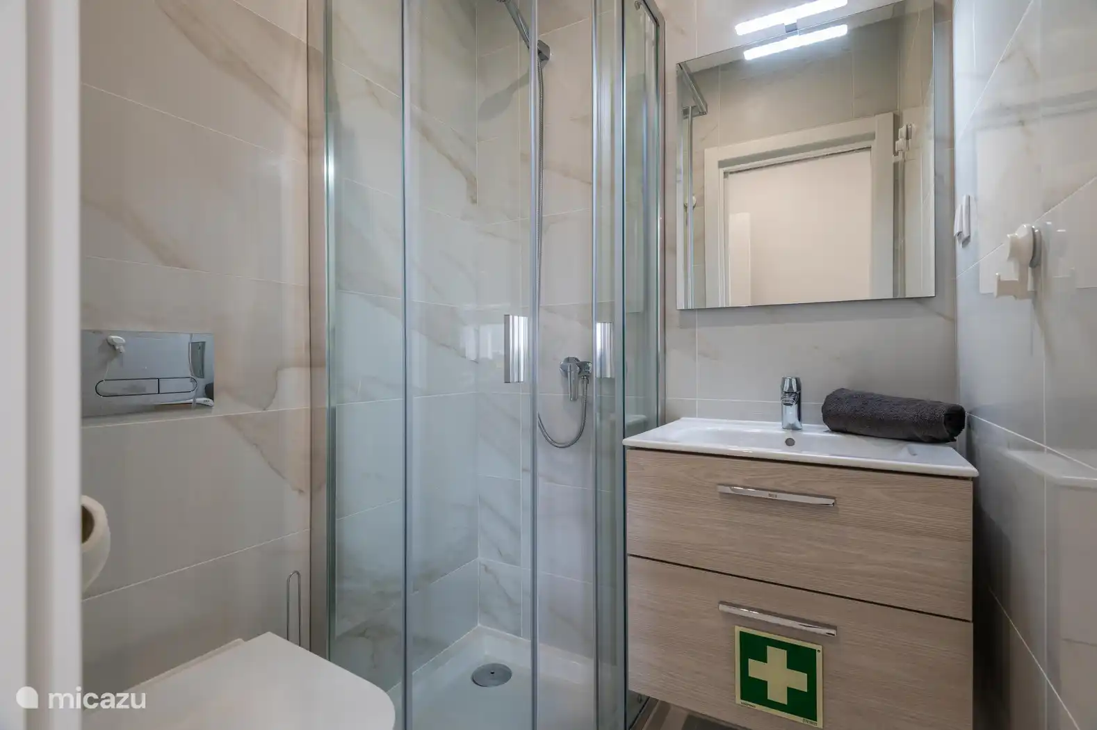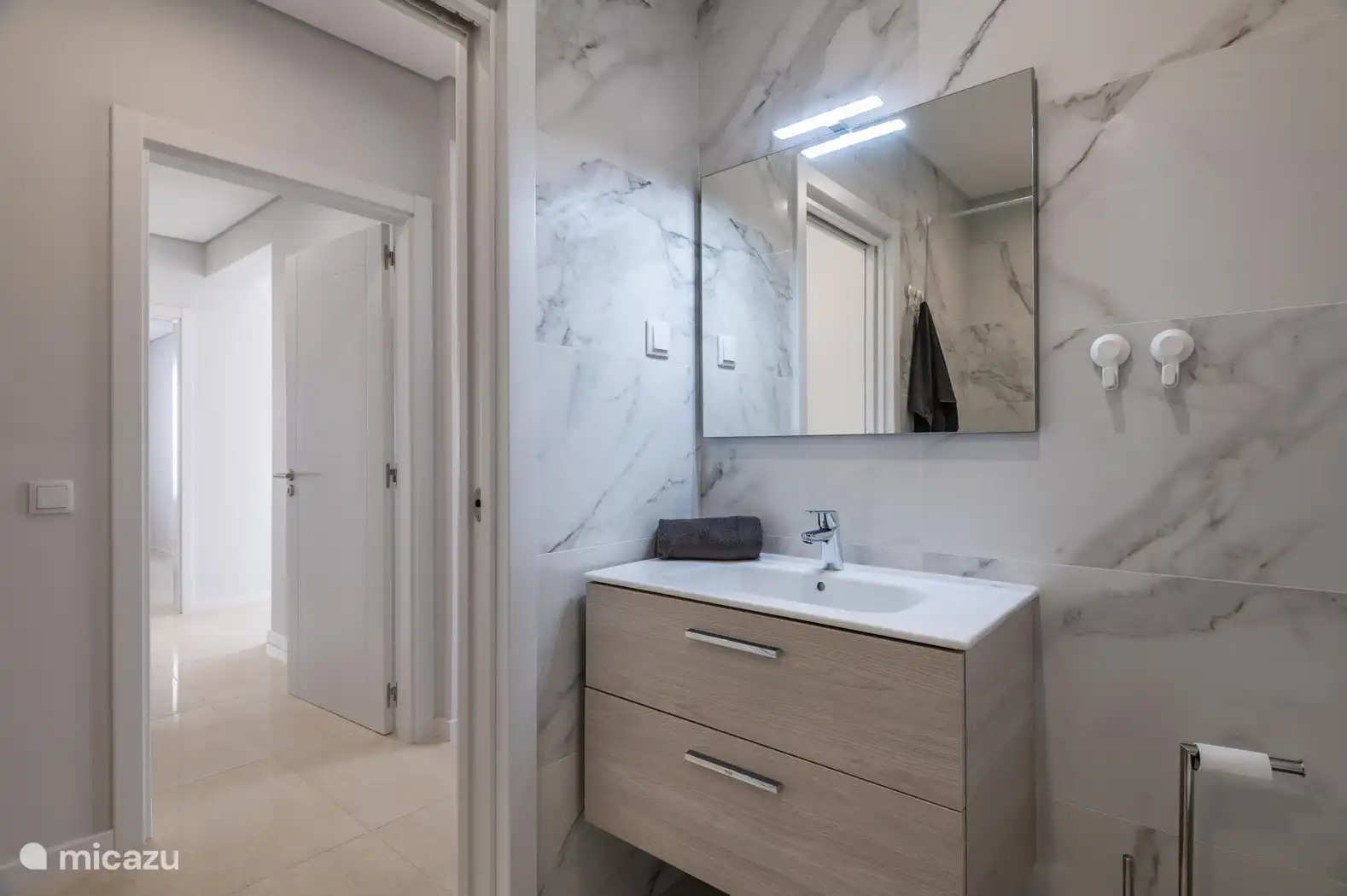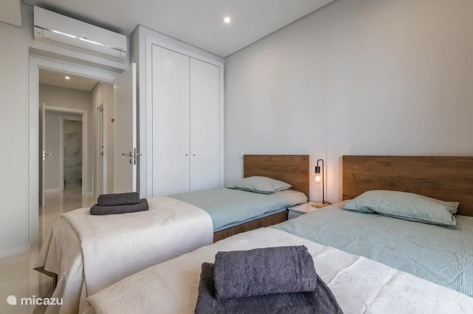 L’appartement présente une disposition lumineuse et ouverte où la cuisine, la salle à manger et le salon se rejoignent et s’ouvrent sur un balcon, parfait pour prendre un café le matin ou un verre le soir. La chambre principale dispose d’un balcon privé et d’une salle de bain avec douche et baignoire. La deuxième chambre dispose de deux lits simples et d’accès à la deuxième salle de bain avec douche à italaque. La cuisine est équipée d’appareils modernes tels que micro-ondes, four, cuisinière, lave-vaisselle, bouilloire et réfrigérateur. Restez connecté grâce à la télévision par satellite et au Wi-Fi gratuit.
