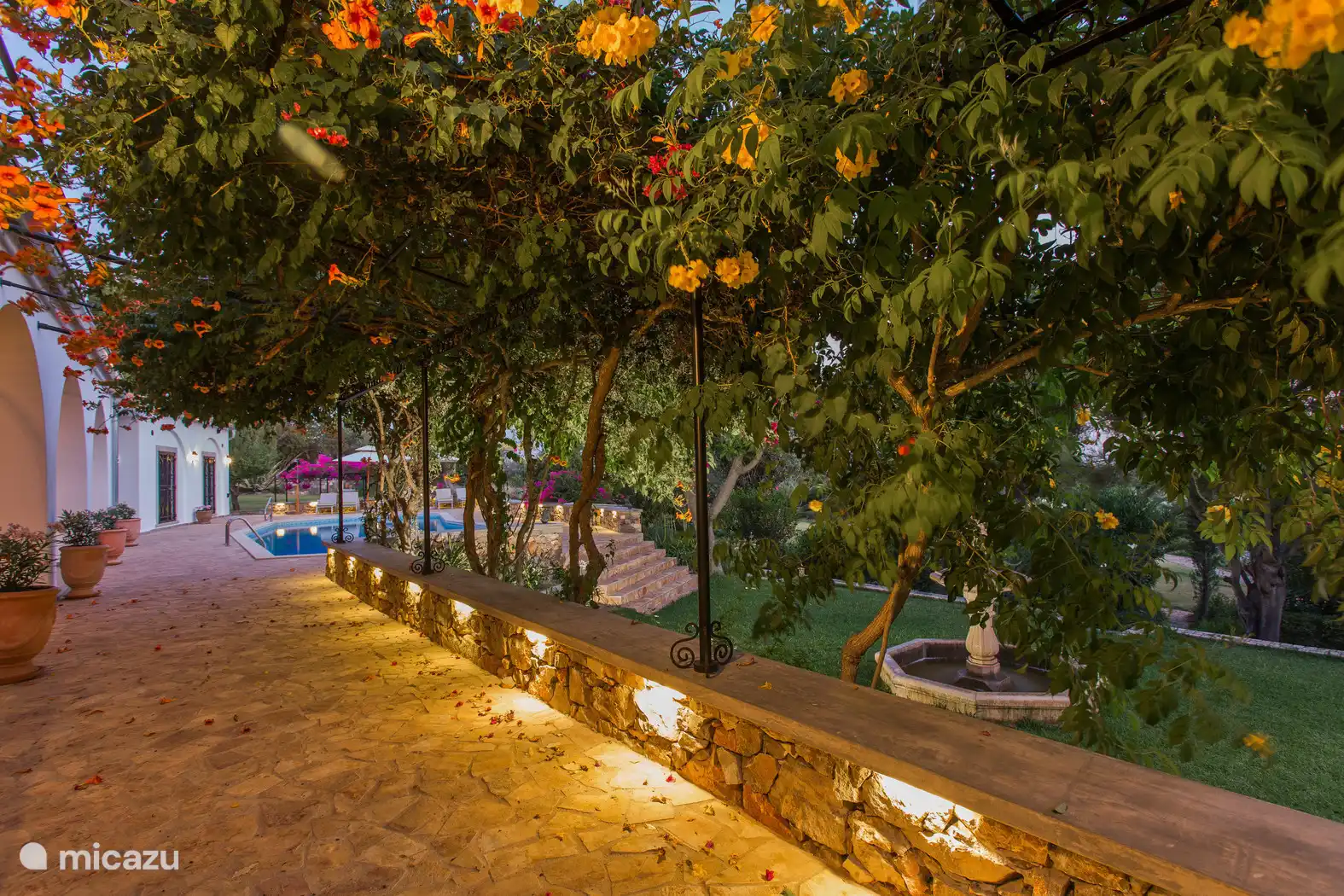 Profitez du grand jardin rempli de plantes subtropicales, d’arbres fruitiers et de fleurs, avec plusieurs endroits calmes pour se détendre, dont un terrain de boccia et un fauteuil à bascule. Le porche couvert avec des arches élégantes surplombe la piscine et le jardin illuminés, parfaits pour manger en plein air ou se détendre le soir.