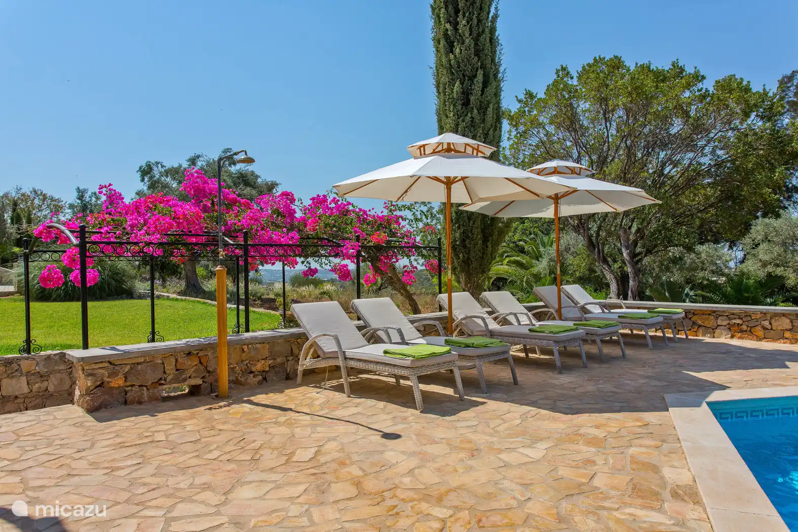 ✔️ Grande piscine privée (13 x 5 m) avec 8 chaises longues