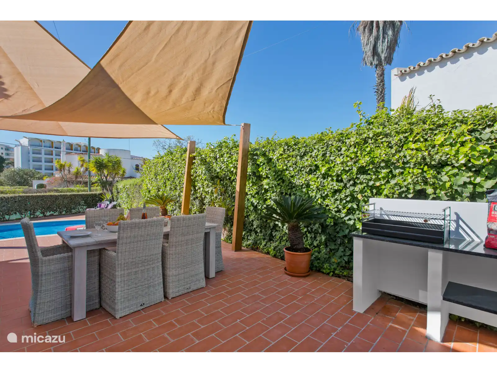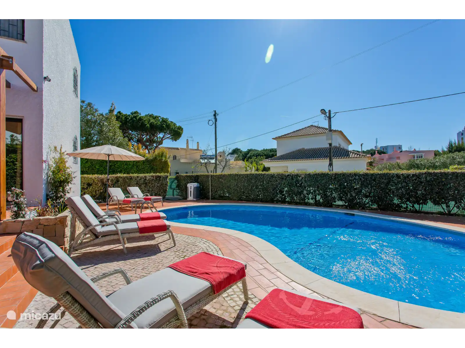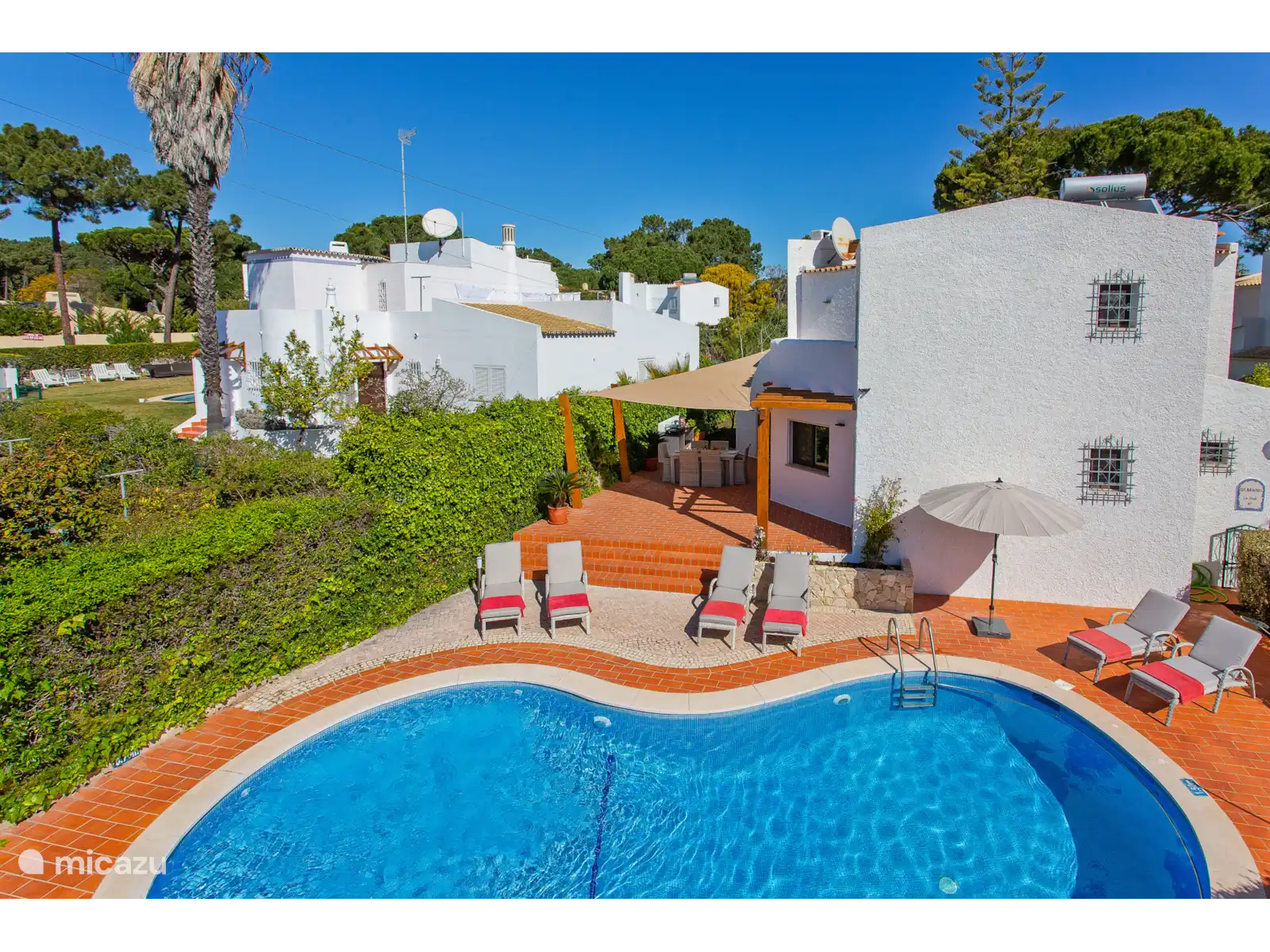 Cette villa individuelle est située dans Le Club, un quartier résidentiel calme de Vilamoura et à distance de marche de la marina et de toutes les commodités. Le salon est ouvert avec une cuisine moderne bien équipée et des portes-fenêtres menant à une salle à manger en plein air avec un auvent. Les deux chambres au premier étage ont des balcons donnant sur la piscine en forme de rein et le jardin clôturé.