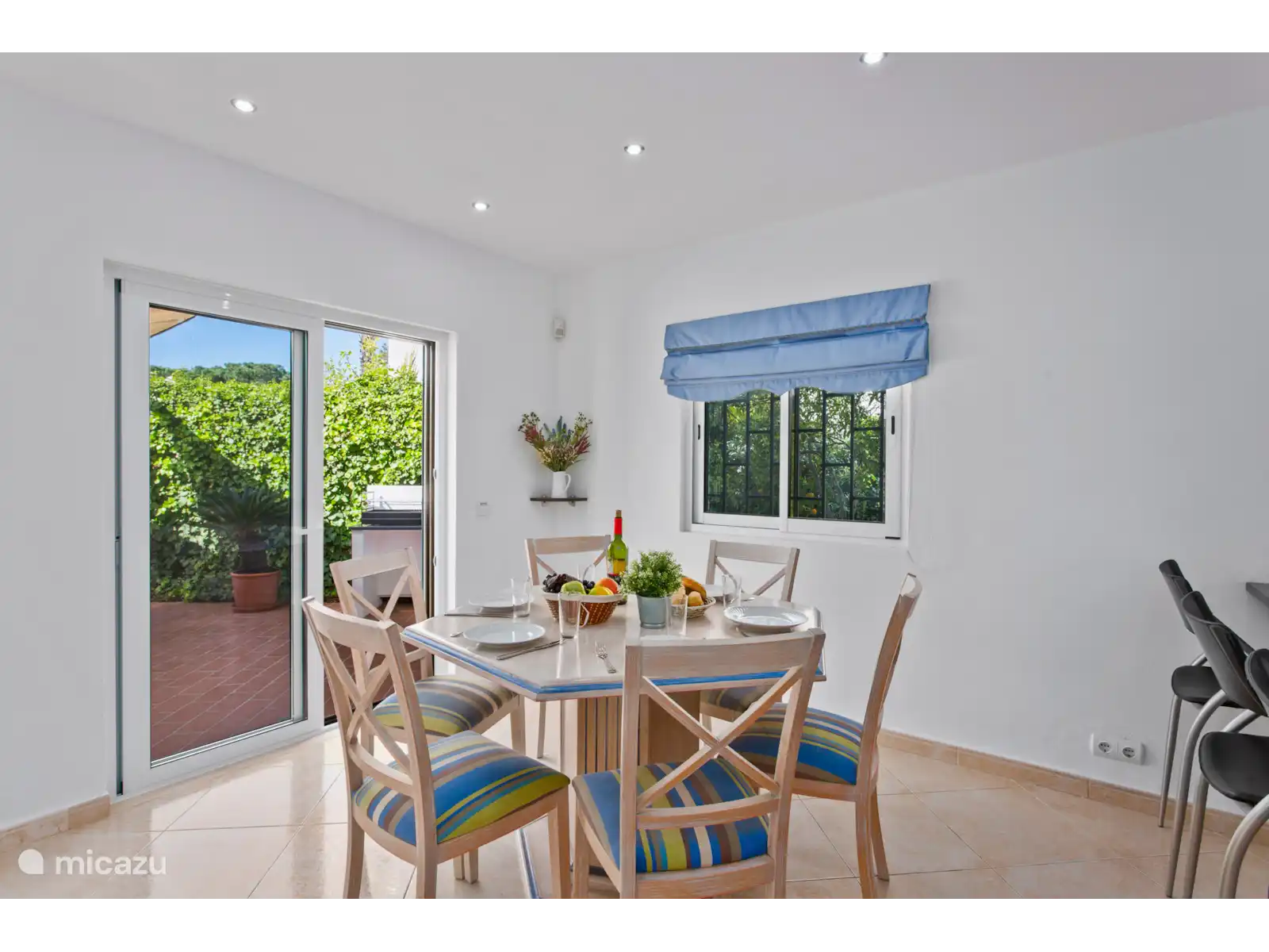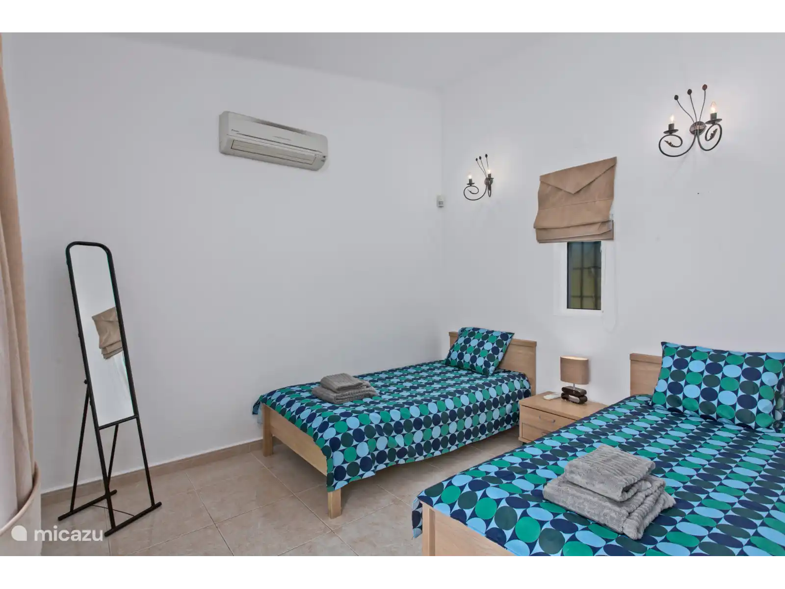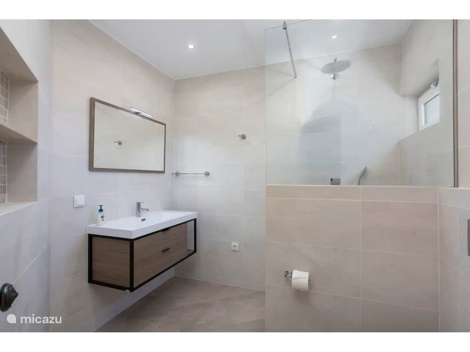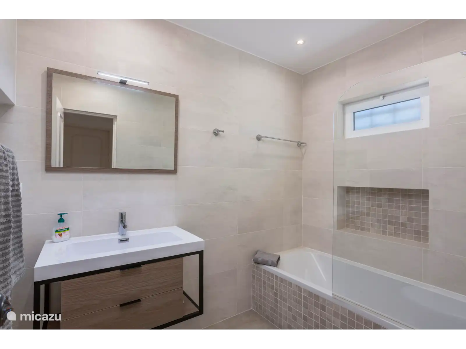 Rez-de-chaussée : espace salon/salle à manger/cuisine ouvert. Arrière-cuisine. 1 chambre avec deux lits simples. 1 salle de bain. Premier étage : 1 chambre double avec balcon, climatisation et salle de bain attenante. 1 chambre à deux lits avec balcon et salle de bain avec douche.