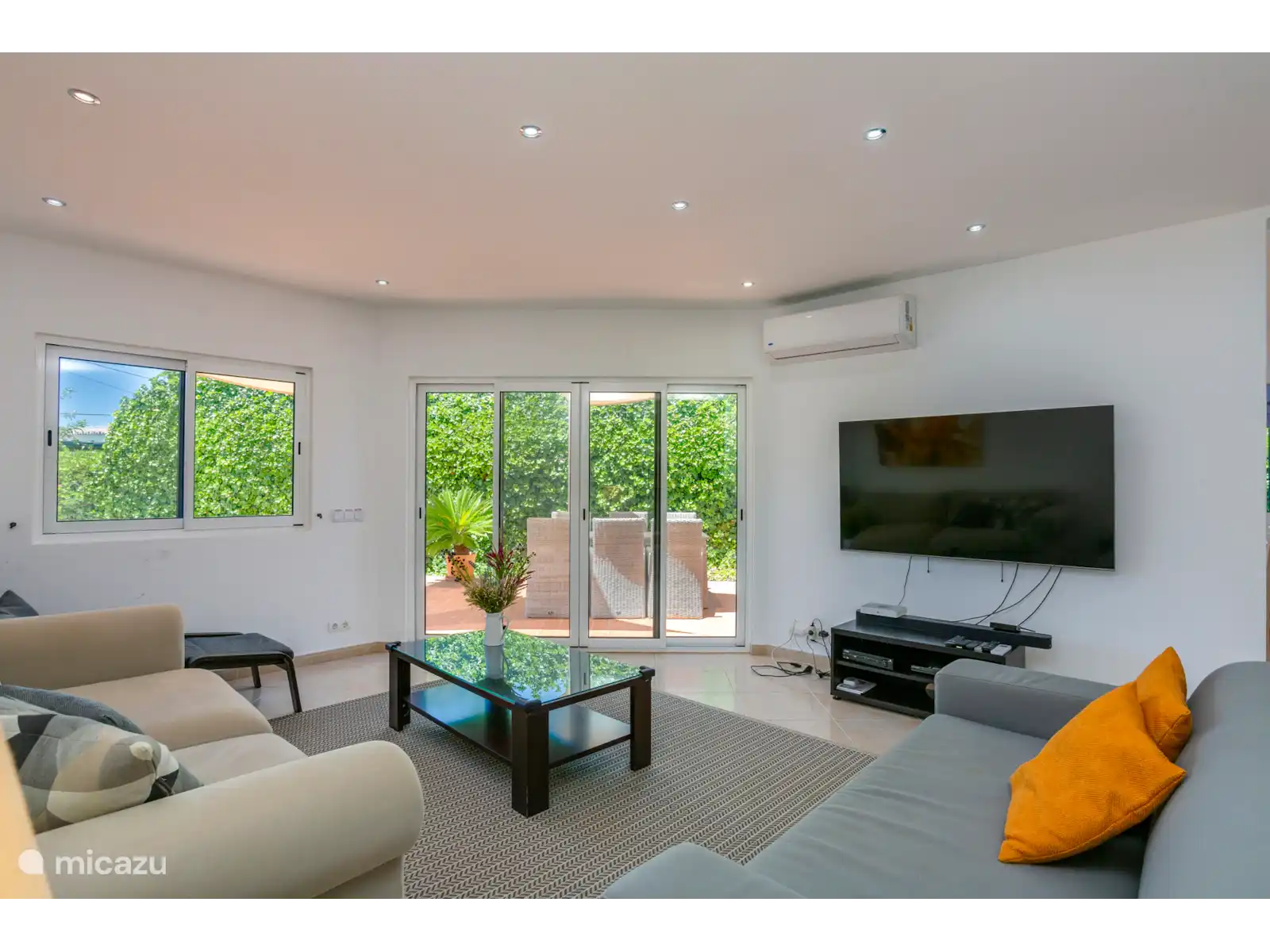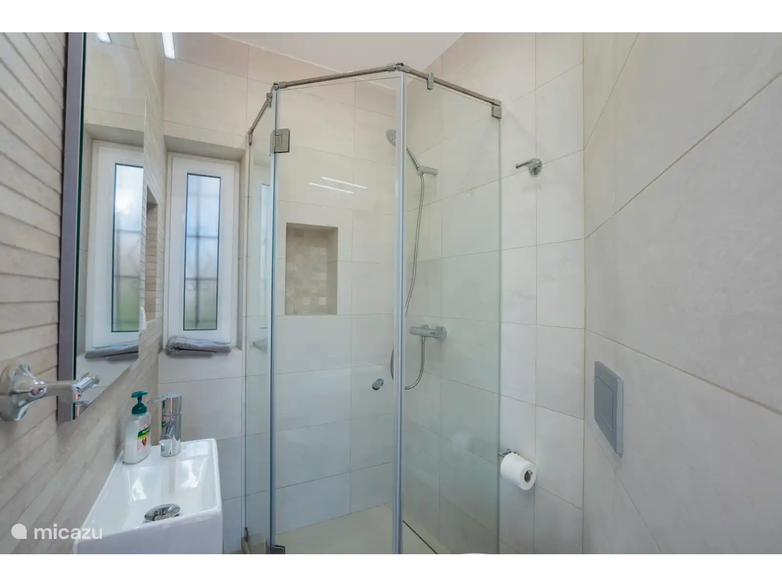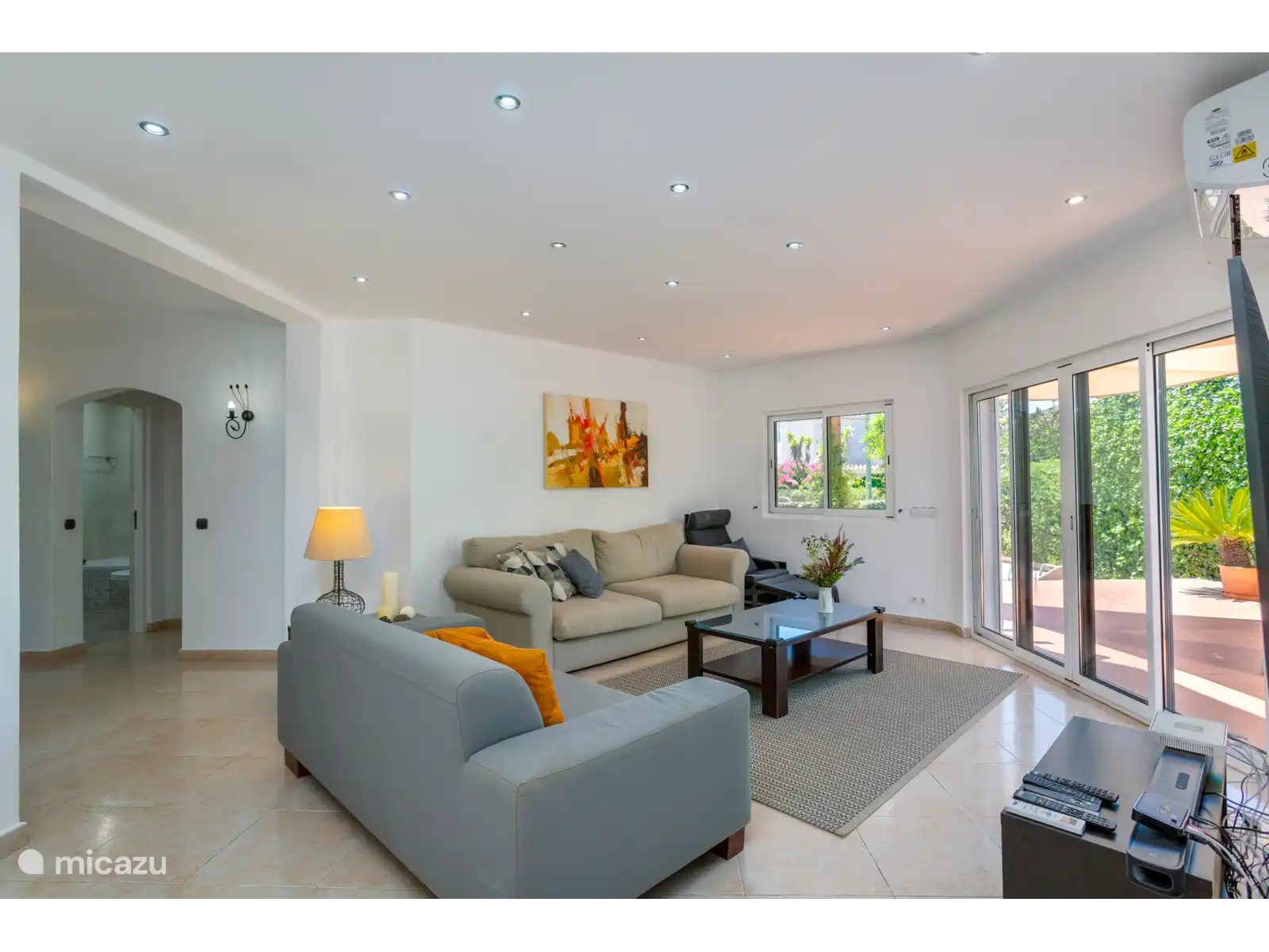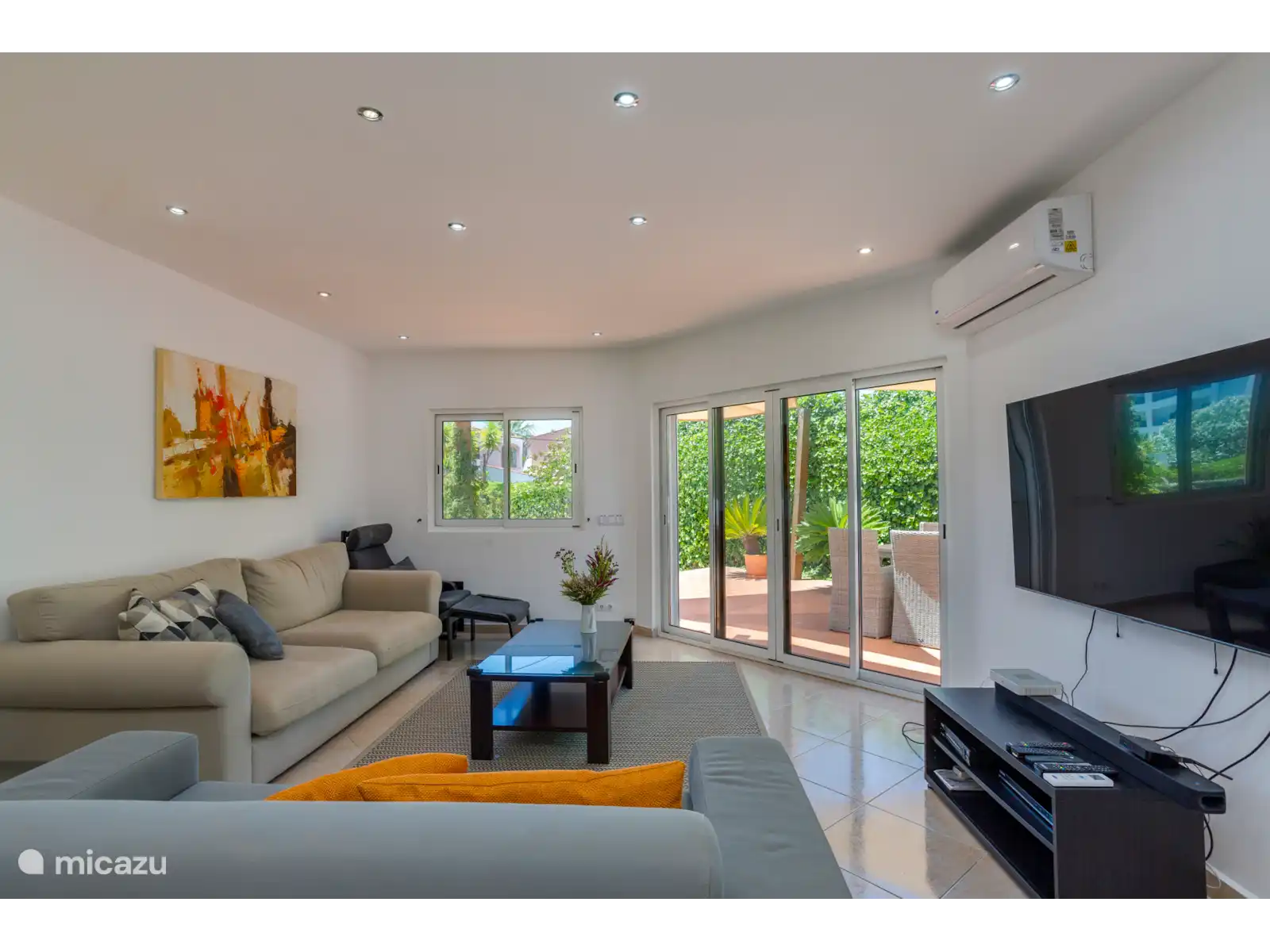 Rez-de-chaussée : espace salon/salle à manger/cuisine ouvert. Arrière-cuisine. 1 chambre avec deux lits simples. 1 salle de bain. Premier étage : 1 chambre double avec balcon, climatisation et salle de bain attenante. 1 chambre à deux lits avec balcon et salle de bain avec douche.