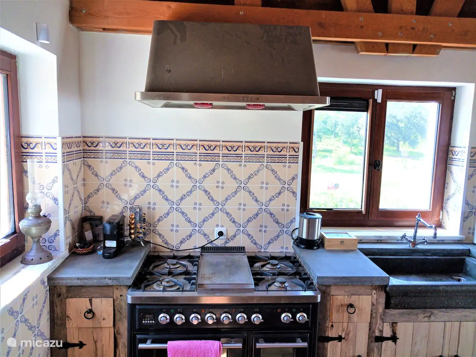 Salon/cuisine ; Cuisine avec cuisinière Boretti avec 2 fours et plaque grill et toutes commodités, coin salon chaleureux avec grande table à manger, portes patio. Poêle à bois, climatisation chaud/froid avec thermostat. Salle de bains; douche à l'italienne, WC, lave-linge, meuble vasque avec miroir et sèche-cheveux. 1 chambre avec 2 lits. Un lit simple supplémentaire peut éventuellement être placé.