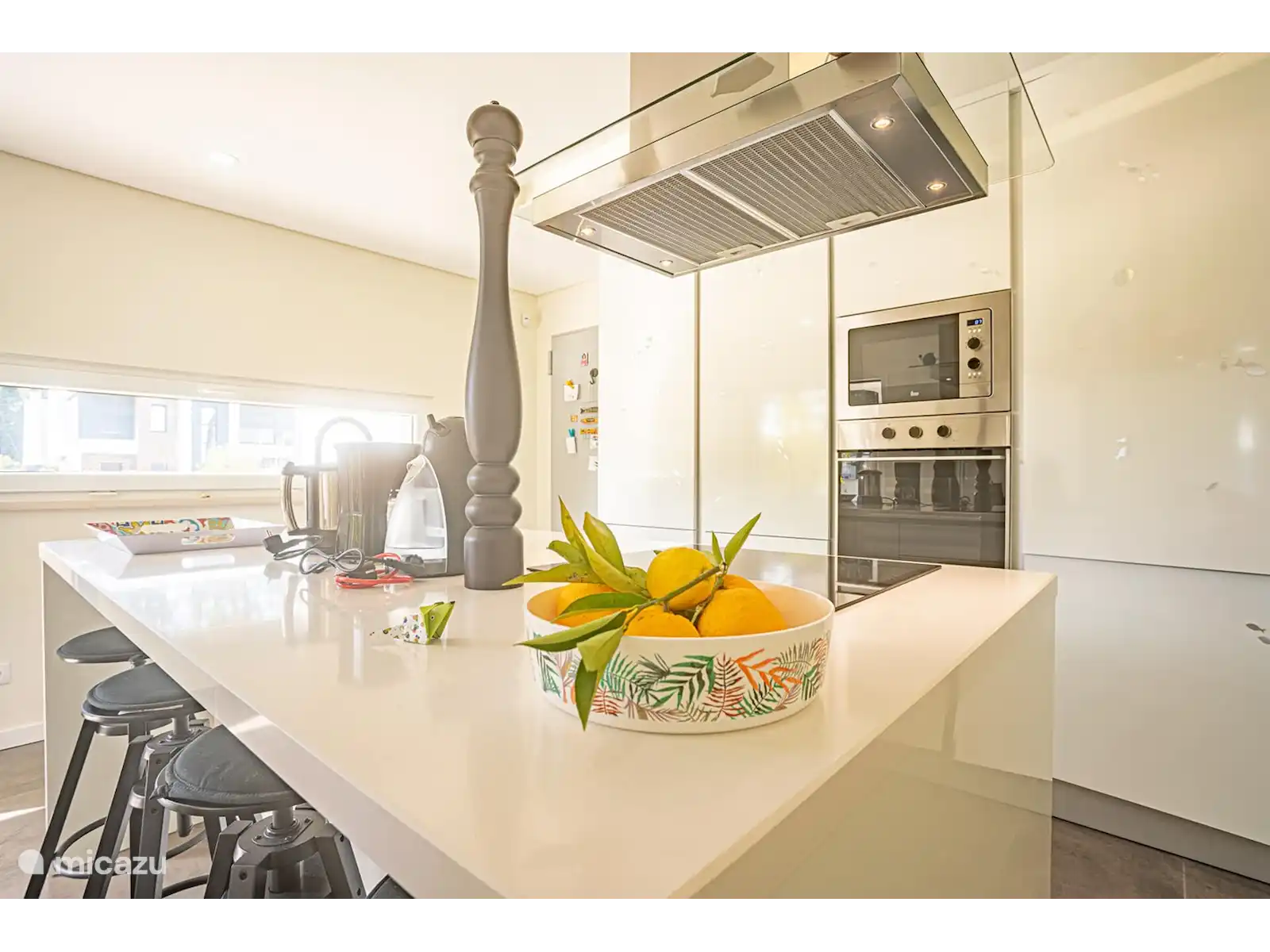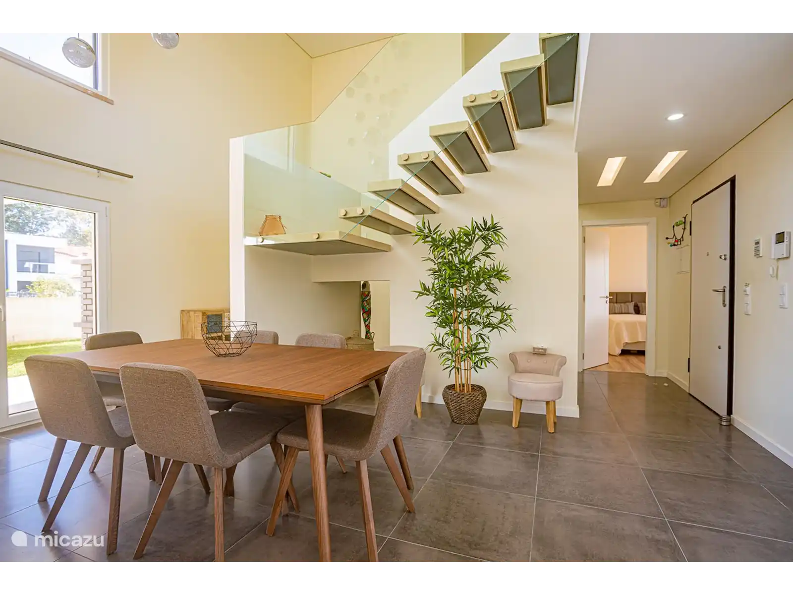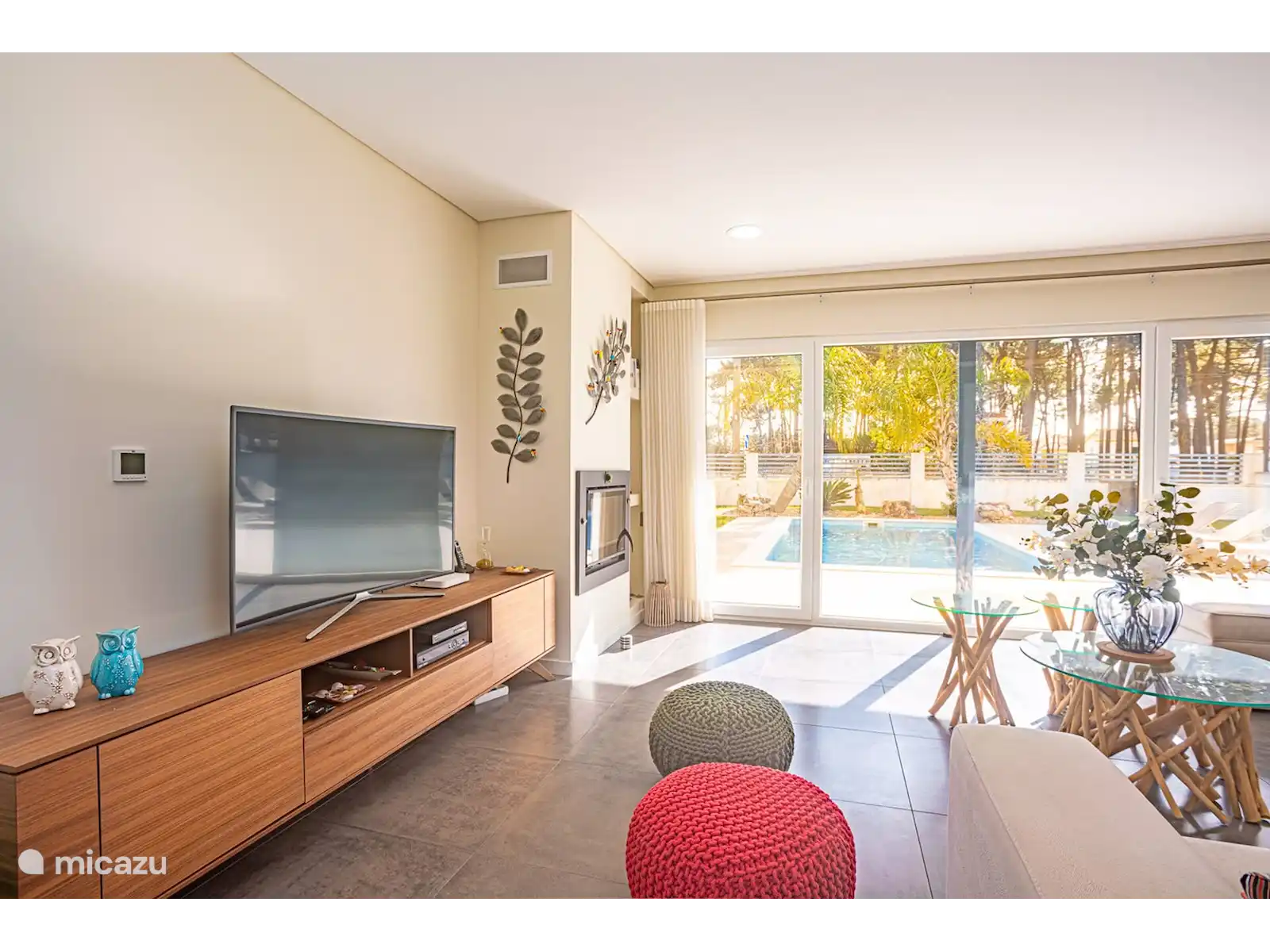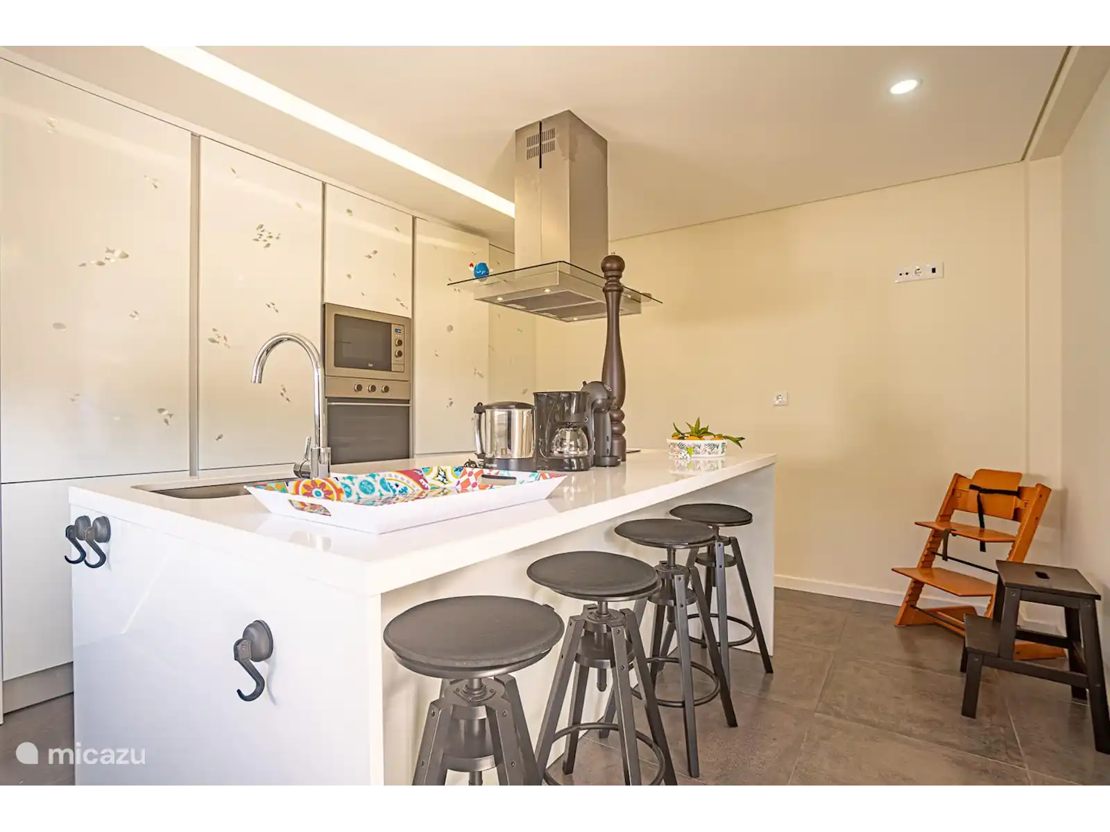 Rez-de-chaussée : Dans le salon spacieux, qui dispose de deux canapés, vous avez une vue directe sur la piscine. Derrière le coin salon se trouve un coin repas avec table et chaises. La cuisine est située dans une pièce séparée. La cuisine dispose d'un îlot de cuisson avec bar et tabourets de bar. La cuisine est également équipée d'un four, d'un lave-vaisselle, d'un four micro-ondes et d'une machine à expresso.