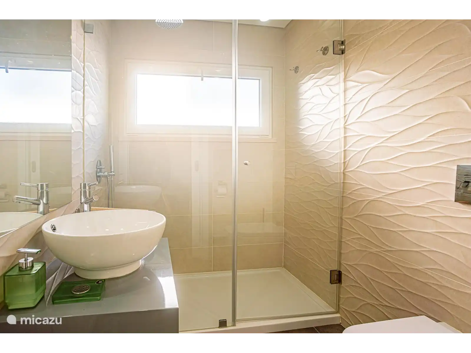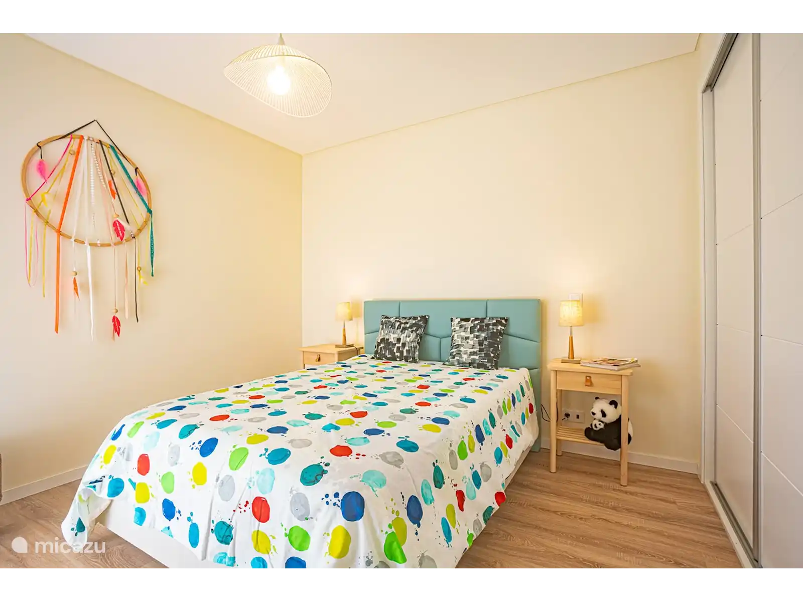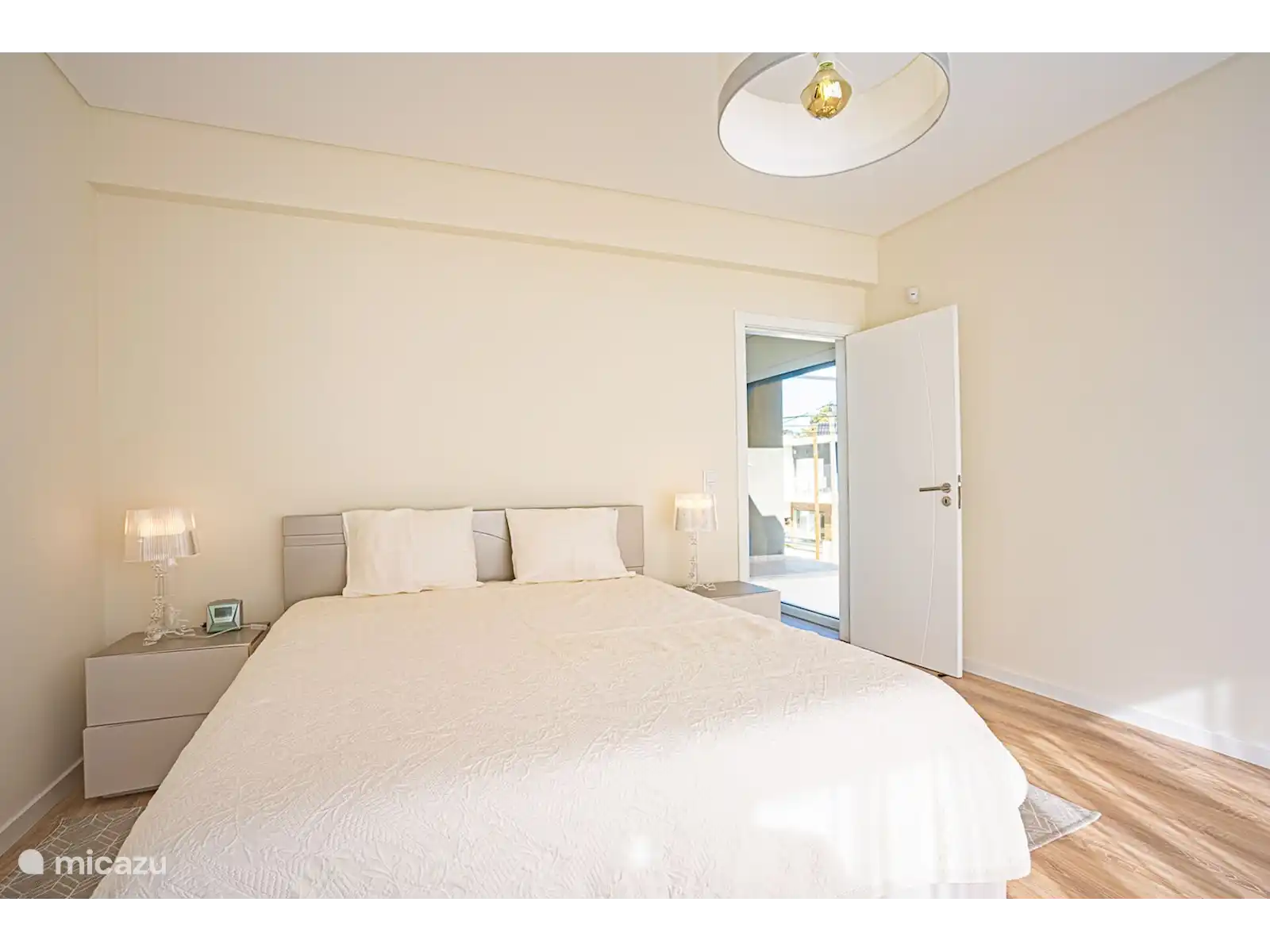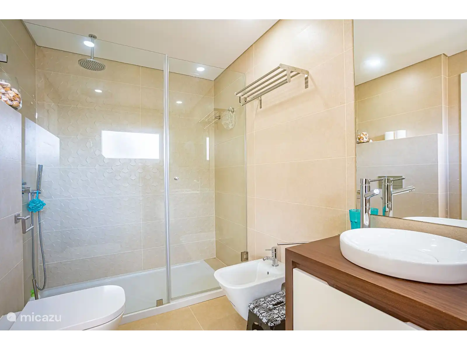 Il y a une chambre double et une salle de bains avec douche.