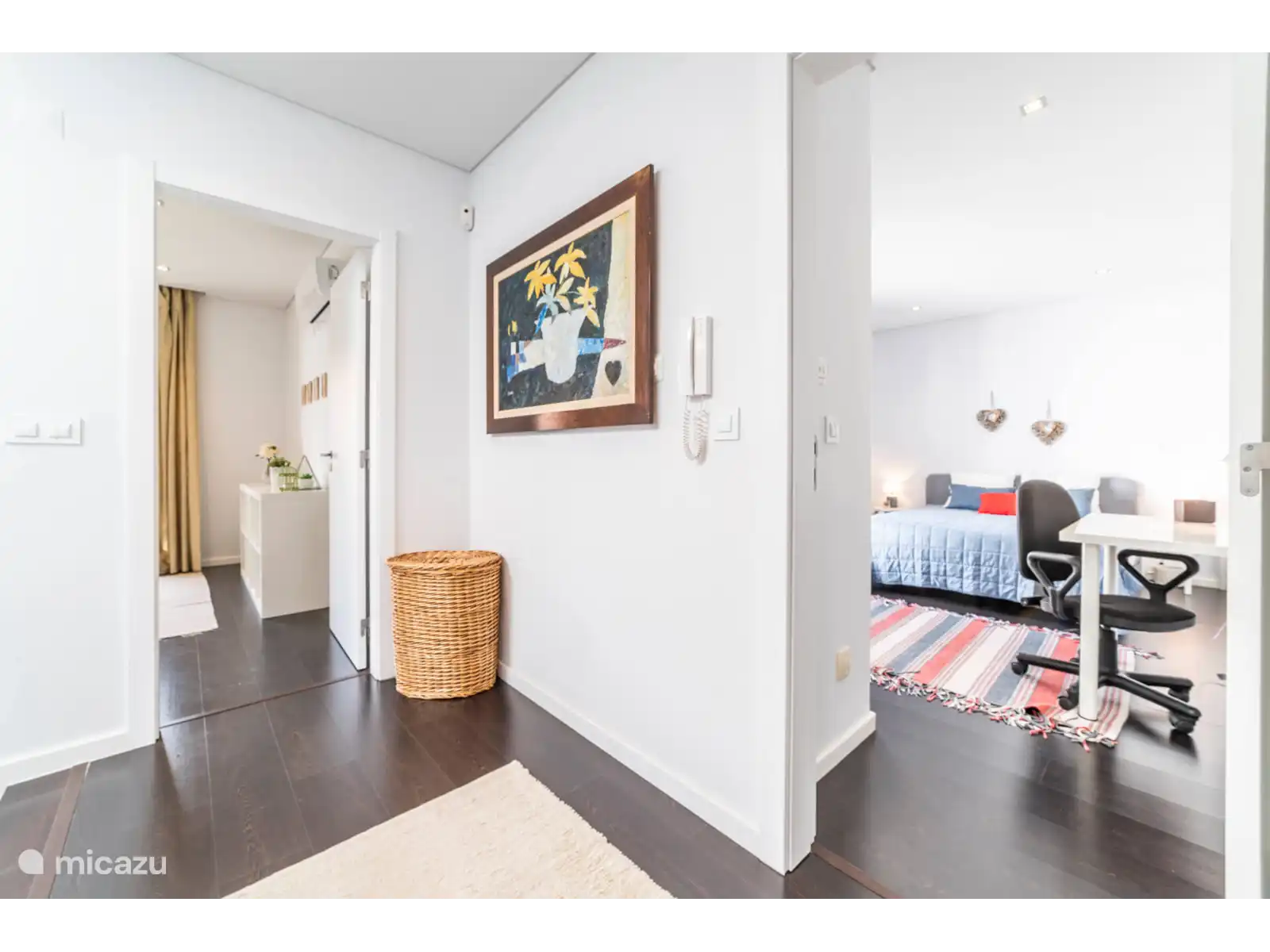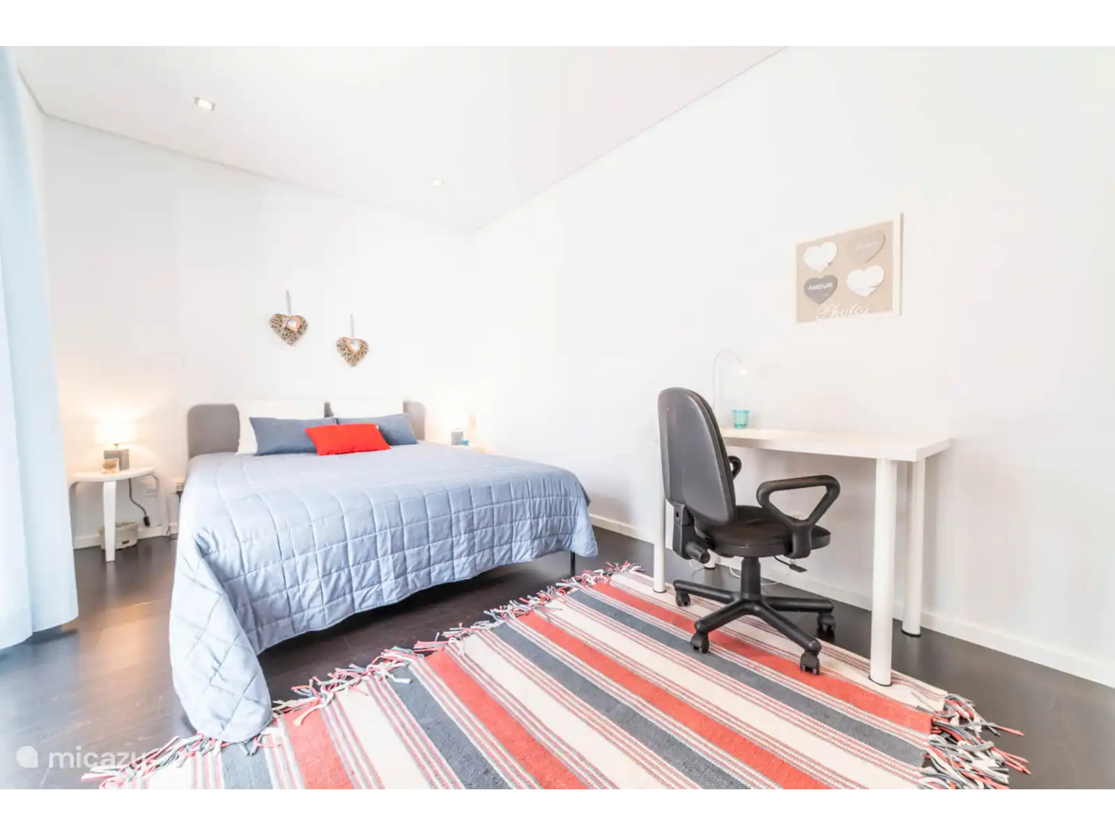 1er étage :Chambre avec lit double et salle de bain attenante. Deux chambres avec lits doubles et une salle de bain partagée.