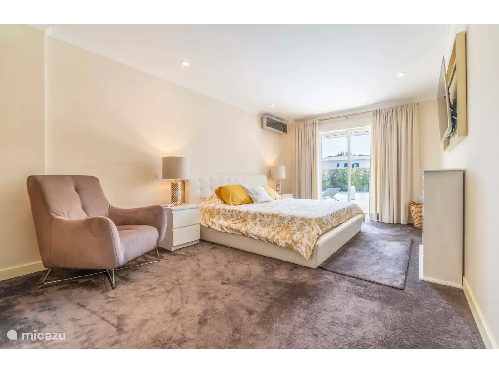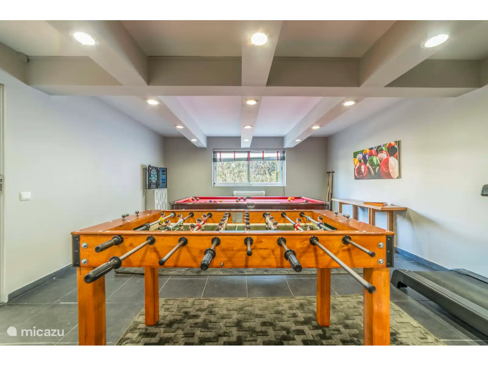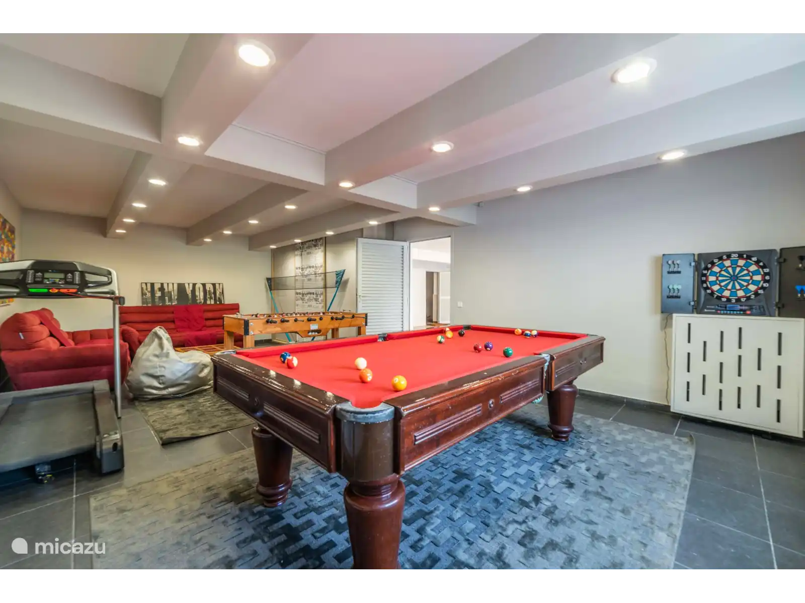 Rez-de-chaussée: Au rez-de-chaussée, vous trouverez un salon spacieux avec un coin repas séparé. La cuisine luxueuse et spacieuse est entièrement équipée. Il y a une buanderie avec machine à laver et un WC séparé. La chambre 1 est une suite spacieuse avec un lit king-size et une salle de bains privative. La chambre 2 est une suite avec lit double (150x200) et. Salle de bain attenante. La chambre 3 dispose également d’un lit double (150x200) et d’une salle de bain attenante. Au rez-de-chaussée : À l’étage inférieur se trouvent un salon supplémentaire et une salle de jeux. On y trouve un billard, un baby-foot, un tapis de course et un jeu de fléchettes. Vous y trouverez également une chambre avec un lit double (160x200) et un lit simple. Et une autre salle de bain avec douche. Toute la maison est climatisée.
