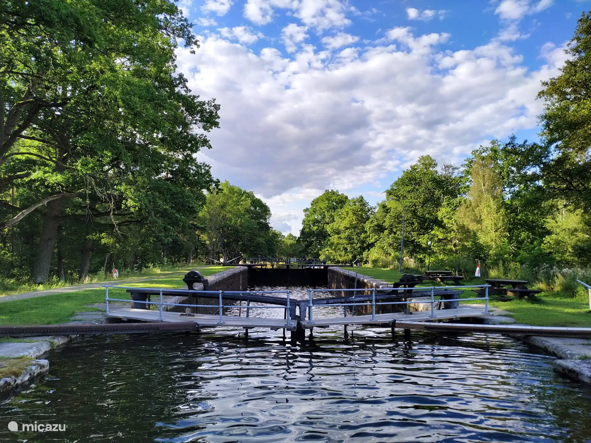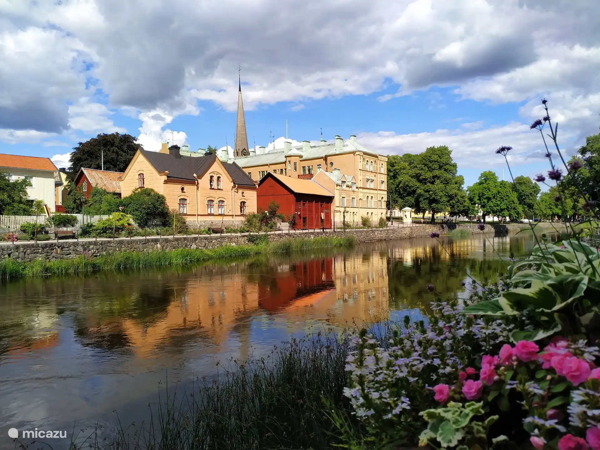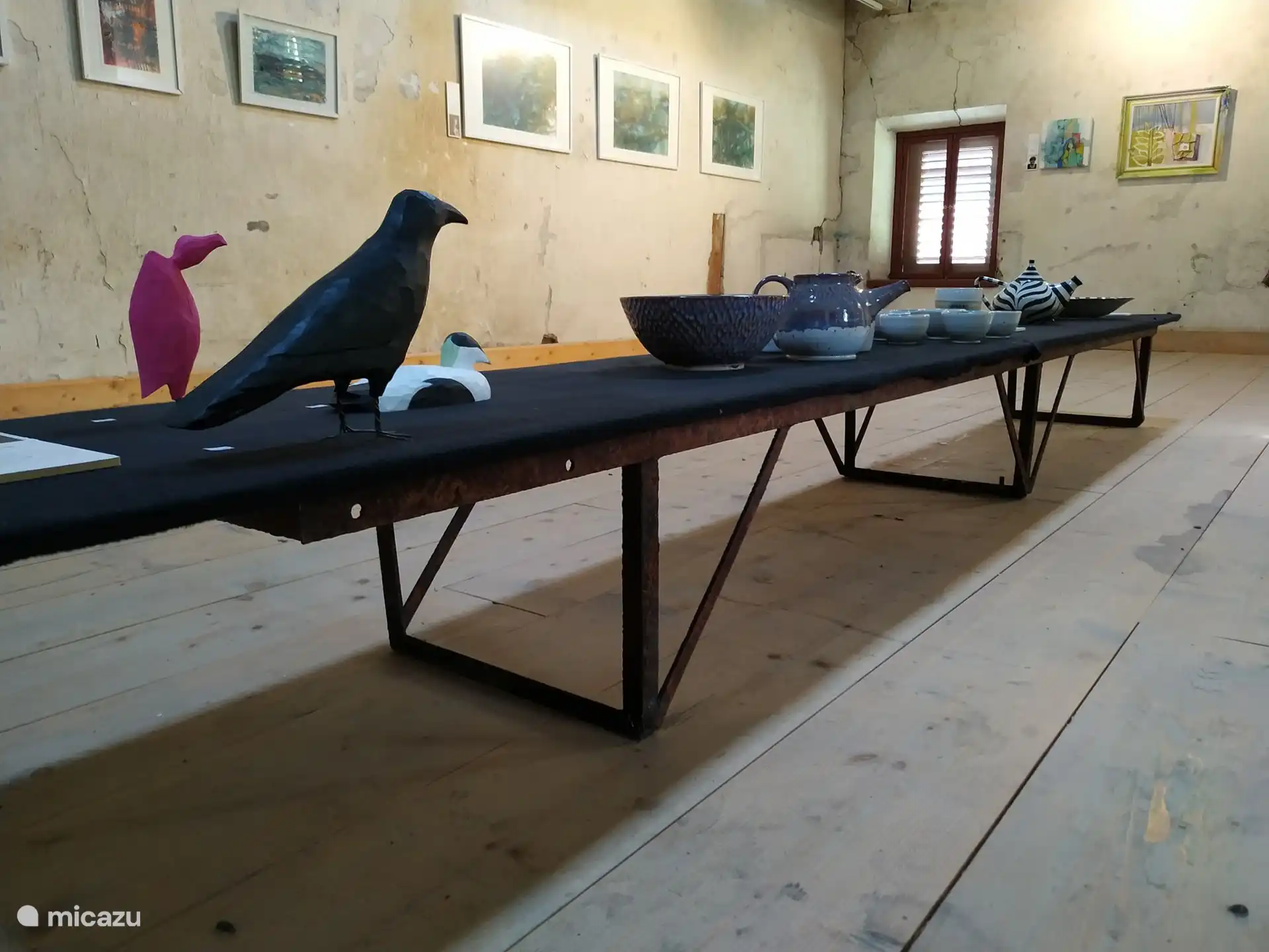 À travers les nombreuses fenêtres donnant sur le jardin, il y a une belle vue sur le jardin.
