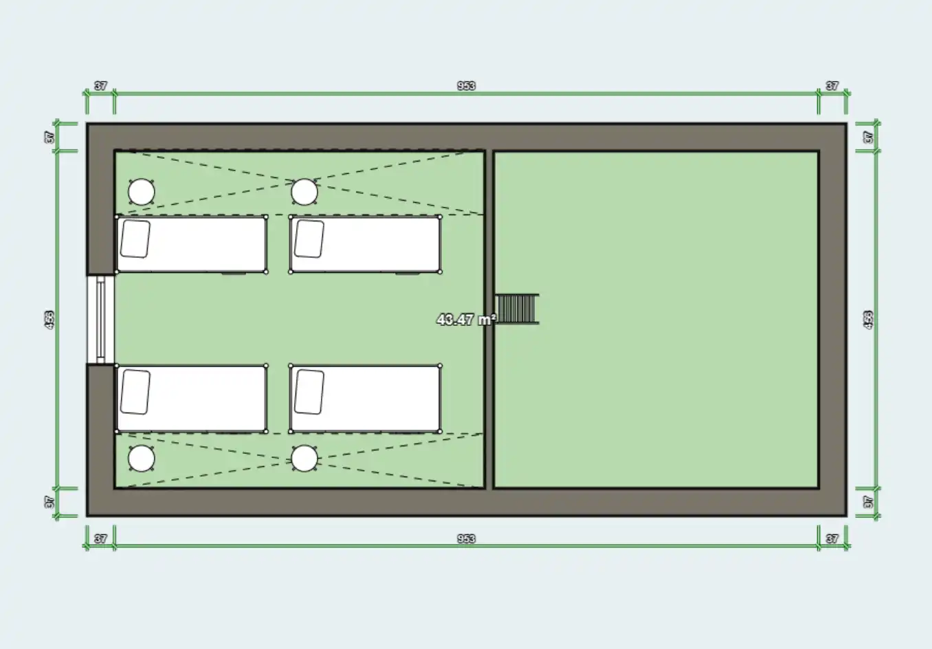 La maison dispose de deux chambres au rez-de-chaussée, d’un salon/cuisine ouverte et d’une mezzanine ainsi que d’une salle de bains avec douche.