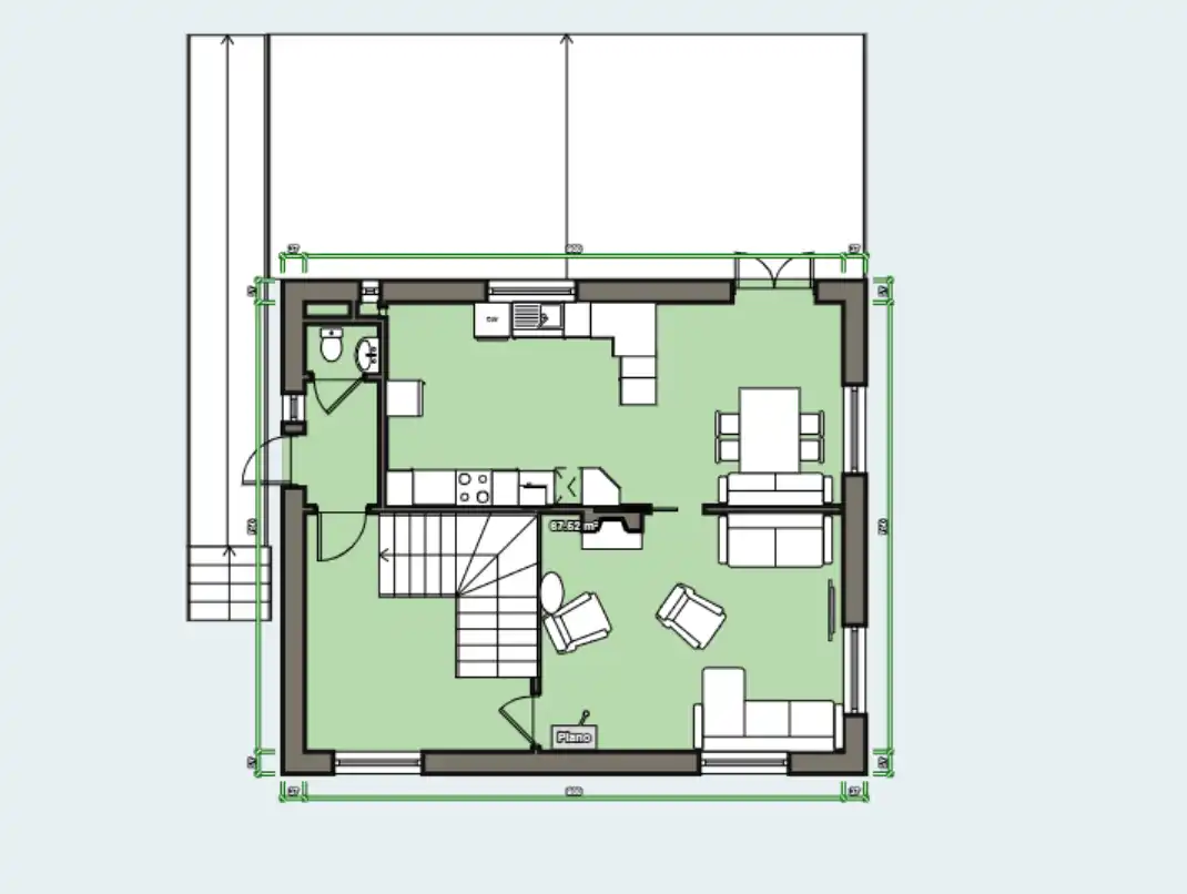 La maison dispose d’un grand balcon donnant sur le parc du village, de trois chambres, d’un salon, d’une cuisine et de toilettes au rez-de-chaussée et d’une salle de bains avec douche.