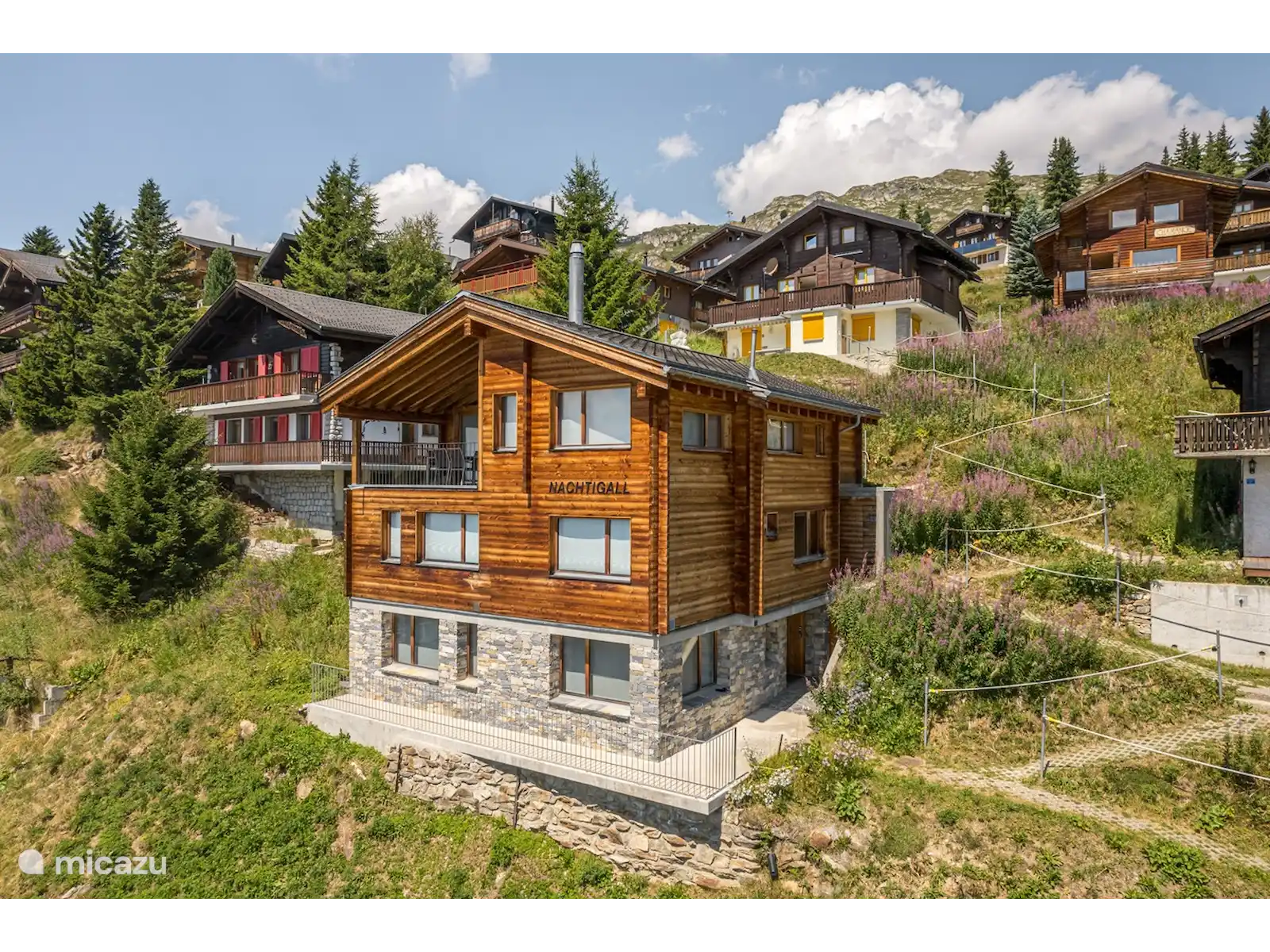 Profitez de la vue magnifique sur les montagnes valaisannes depuis le plateau ensoleillé.Le chalet moderne, spacieux et confortable avec deux appartements est idéalement situé au centre de Bettmeralp au milieu du plateau d’Aletsch.L’emplacement légèrement surélevé de la maison offre un Rundsicht.Im unique le ski d’hiver commence sur le pas de la porte et en été la randonnée sur le réseau de sentiers de randonnée rapidement accessible de l’Aletsch Arena.